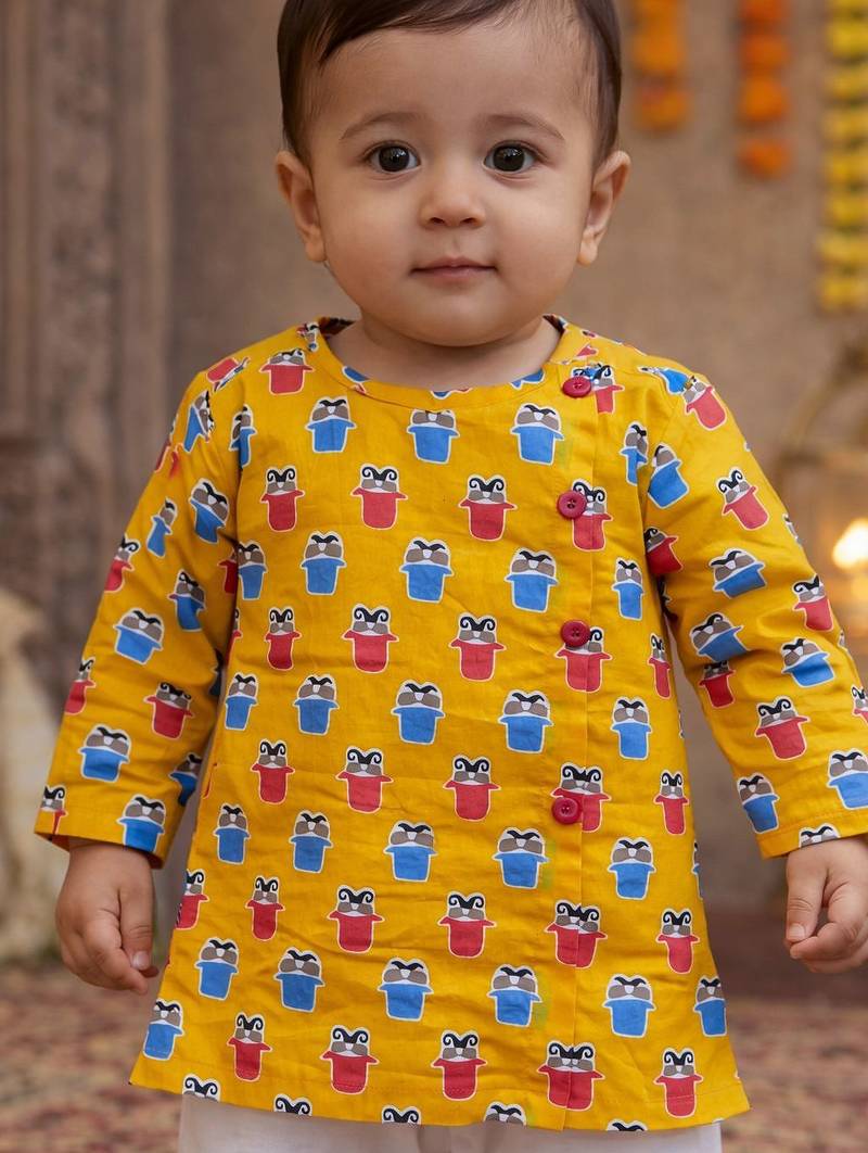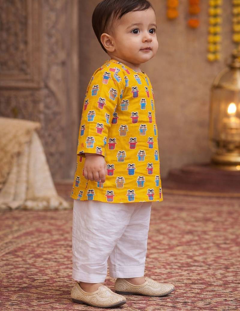 Baby boy printed kurta pajama set (inb-yellowmoustache)