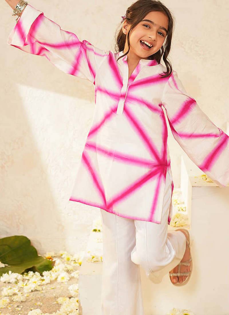 Girls dyed regular pure cotton kurti with trousers