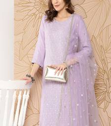 Lavender embroidered pure cotton kurta set