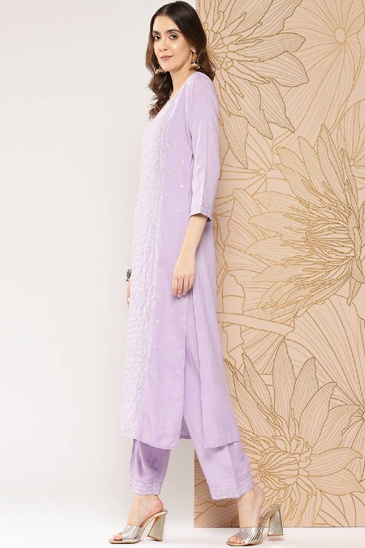 | Product Name | Lavender Embroidered Pure Cotton Kurta Set | |