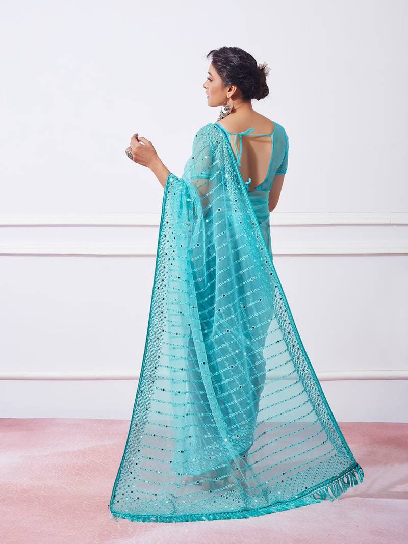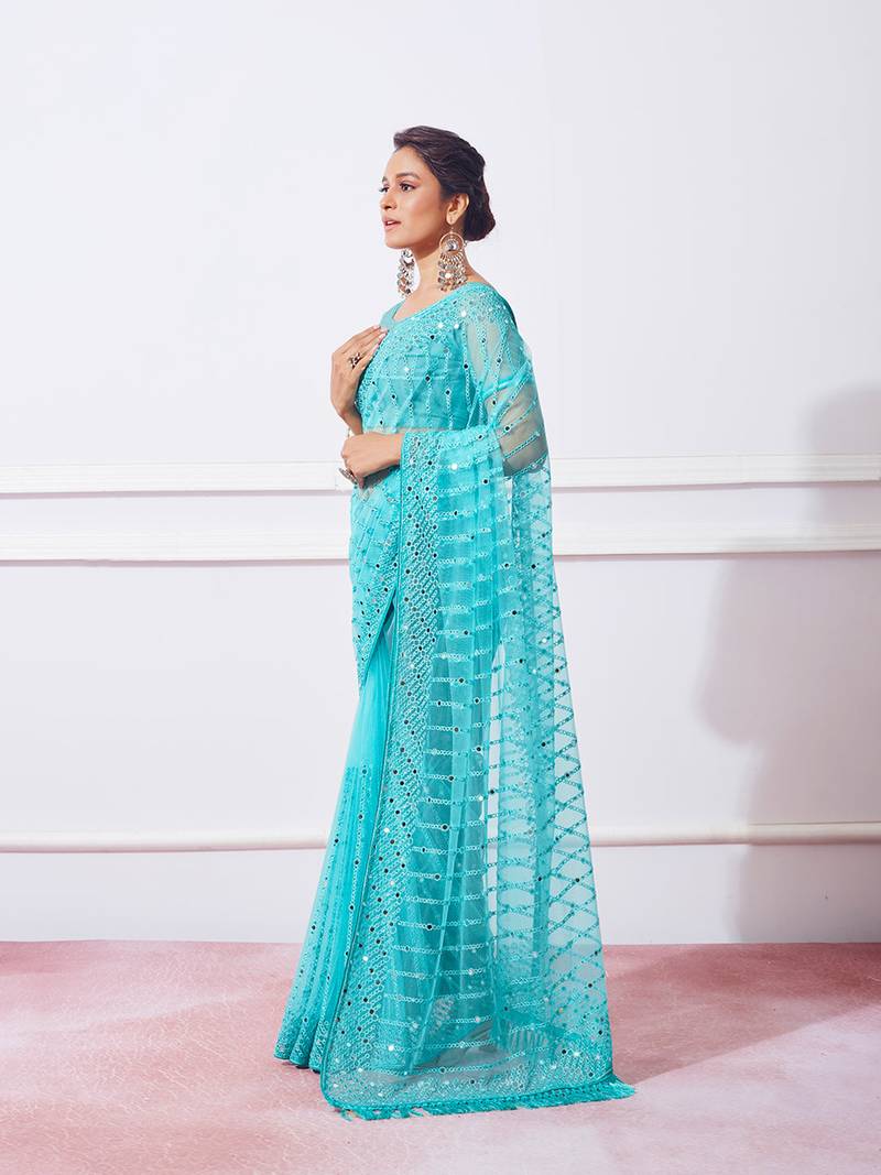 | Product Name | Sky Blue Mirror Work Net Sarees With Un Stitched Blouse | |