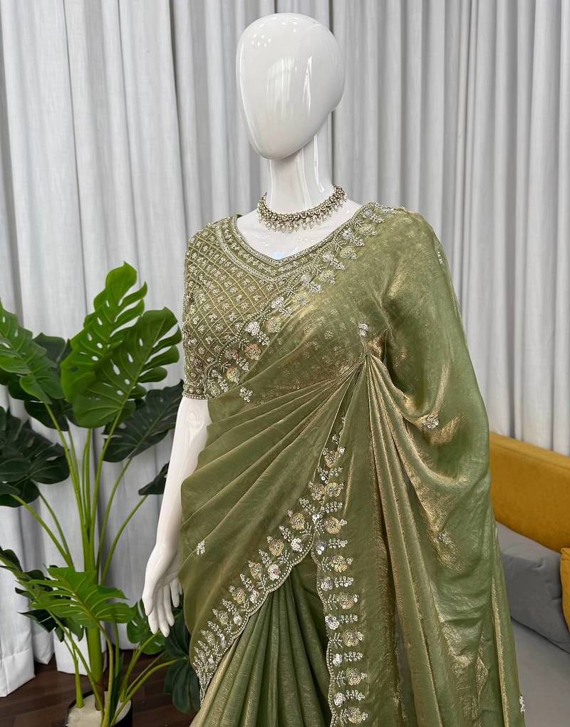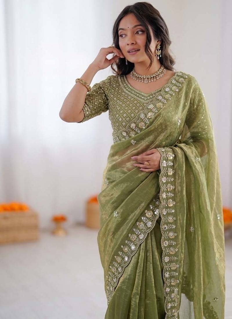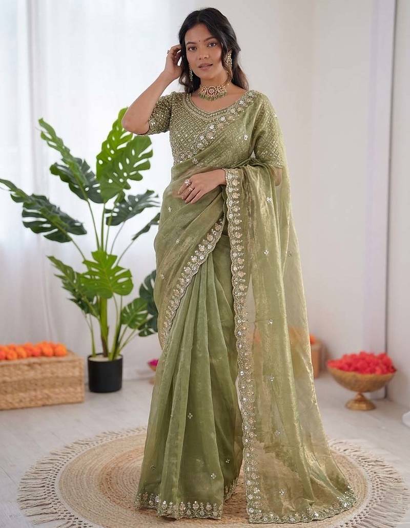 | Product Name | Women Mehendi Sequence Beds Work Organza Silk Party Wear Saree | |
