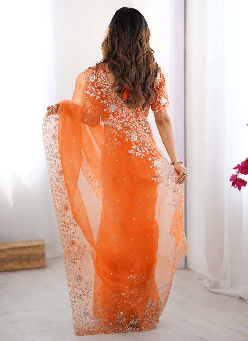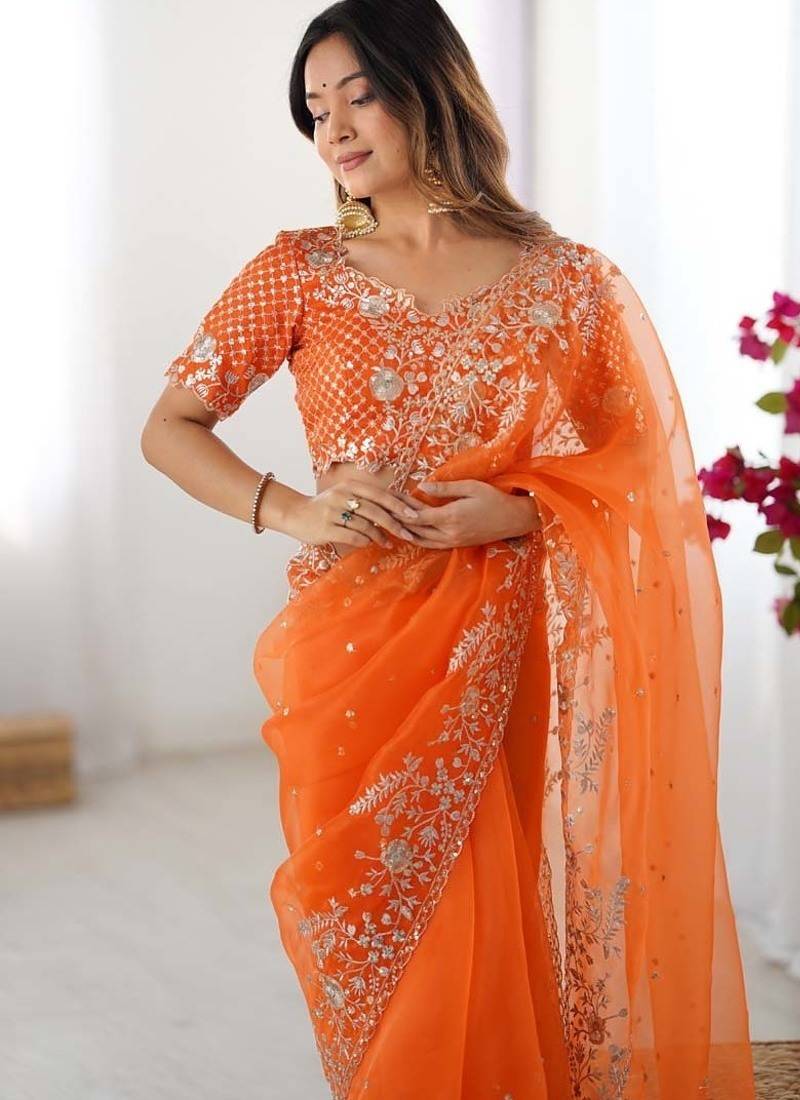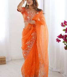 | Product Name | Women Orange Thread Sequence Organza Silk Party Wear Saree | |
