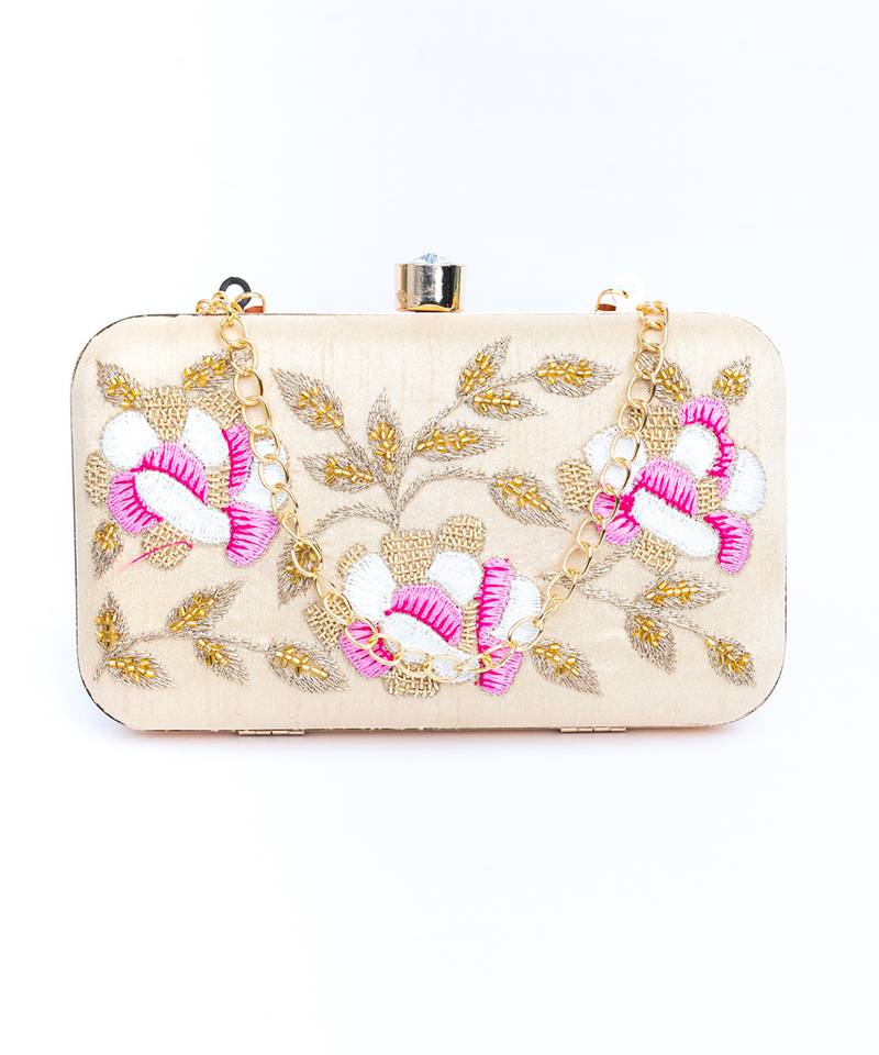 | Product Description | Features Intricate Ethnic Hand Embroidery With Delicate Embellishments On A Soft Beige Base For Artisanal Elegance. Sculpted Box Silhouette Offers A Refined Look With Cultural Flair. Includes One Main Compartment Secured With A Click Closure For Stylish And Secure Access. Comes With A Detachable Shoulder Chain For Flexible Styling—Handheld Or Crossbody. A Versatile Accessory Perfect For... |