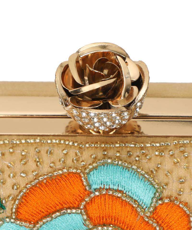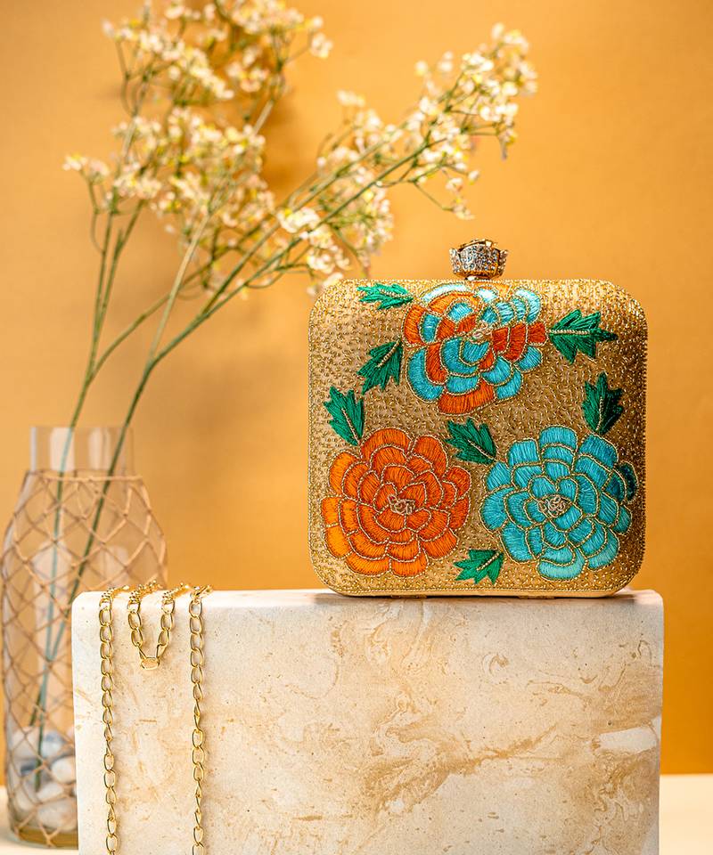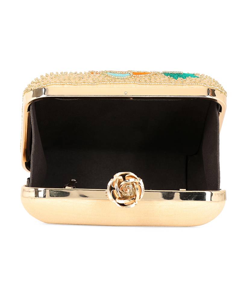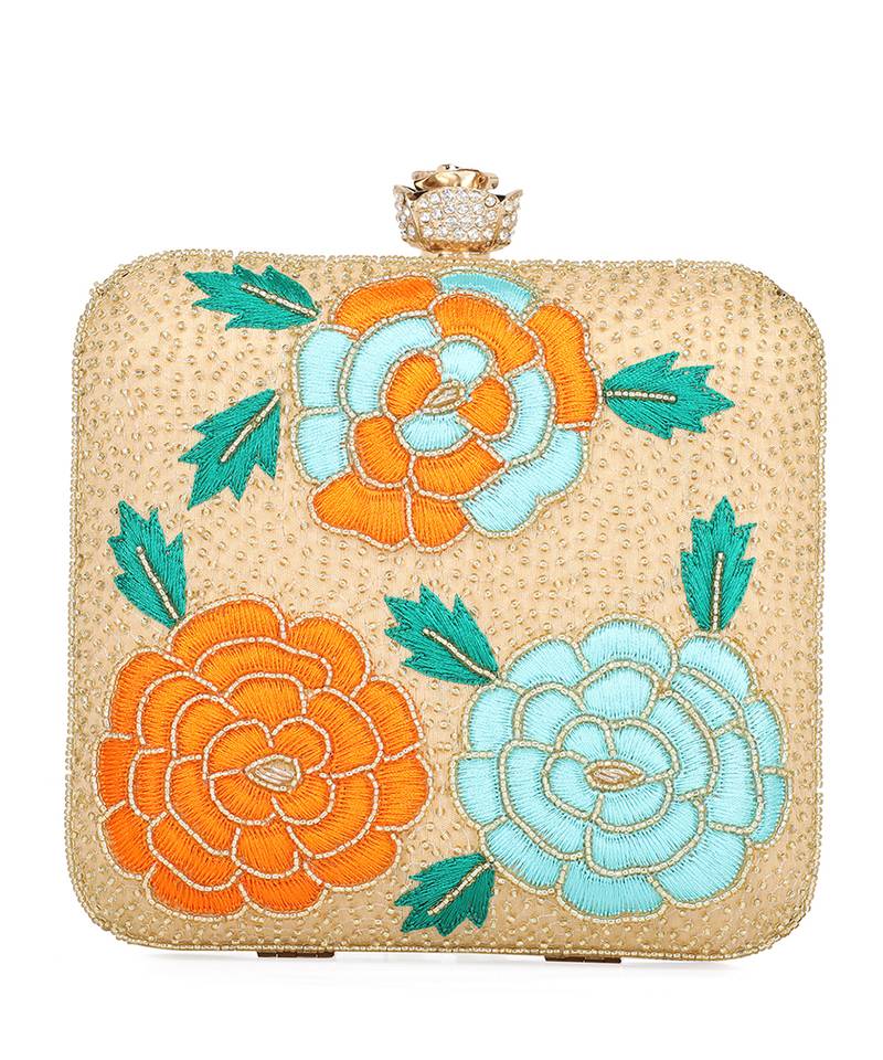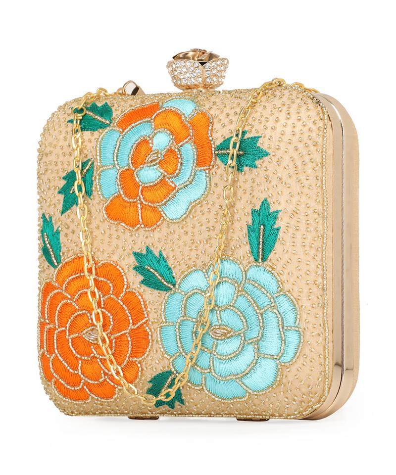 | Product Description | Elegant Beige Clutch Adorned With Delicate Floral Embellishments. Structured Box Silhouette For A Chic Festive Appeal. Comes With Shoulder Strap For Versatile Carrying. 1 Main Compartment Secured With Click Closure. Perfect For Weddings, Parties & Festive Occasions. |