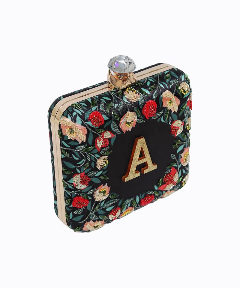 | Product Name | Black Customised Floral Embroidered Clutch | |
