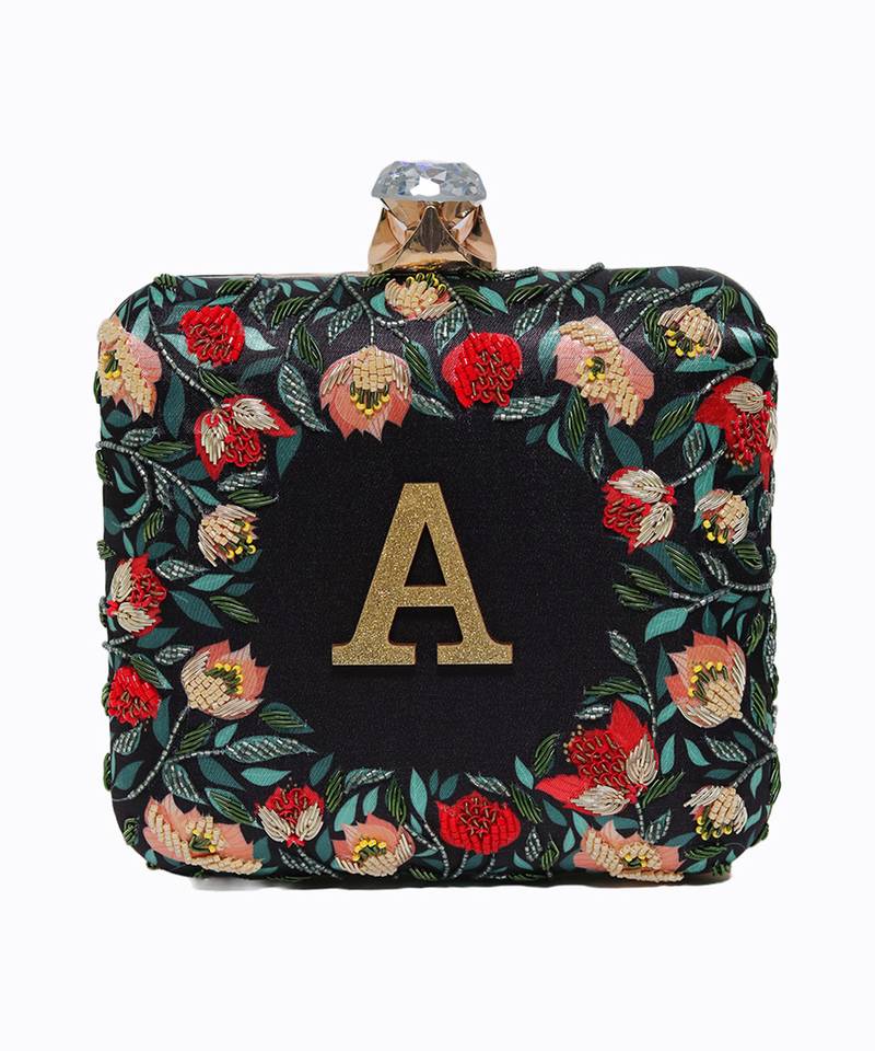 | Product Description | Showcases Vibrant Black, Green, And Red Floral Printed Back With Elegant Embroidered Detailing On The Front Panel. Features A Standout Alphabet 'a' Motif For Personalized Expression. Structured Box Silhouette With Click Closure Secures Essentials Stylishly. Comes With A Shoulder Strap For Comfortable Crossbody Or Handheld Carry. A Festive Pick For Events, Gifting, Or Personalized Fashion... |