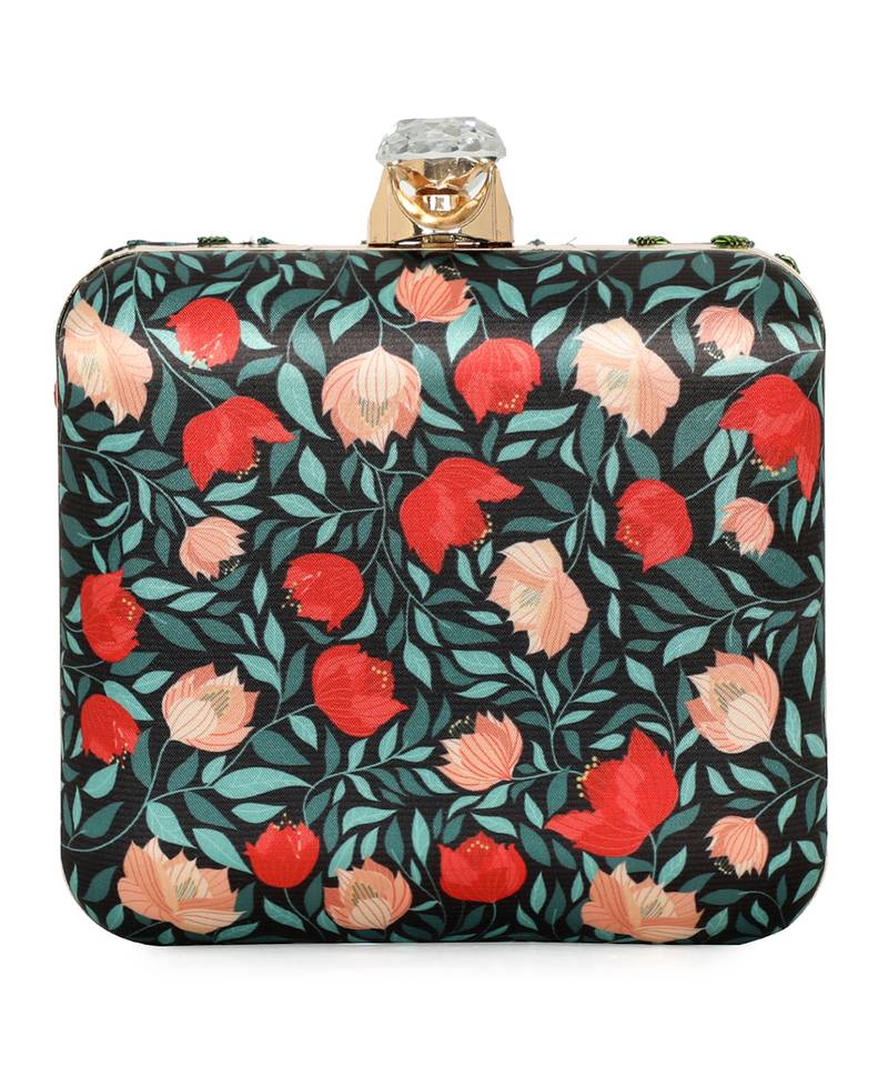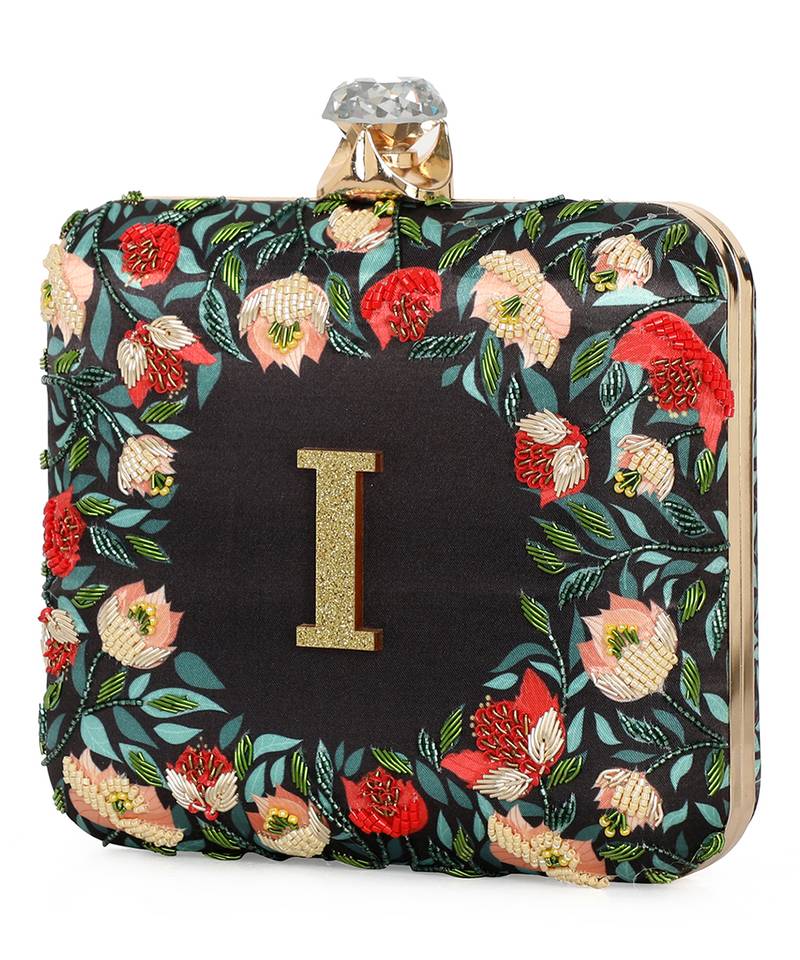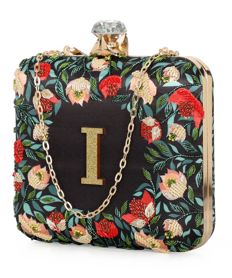| Product Description | Showcases Vibrant Black, Green, And Red Floral Printed Back With Elegant Embroidered Detailing On The Front Panel. Features A Standout Alphabet 'i' Motif For Personalized Expression. Structured Box Silhouette With Click Closure Secures Essentials Stylishly. Comes With A Shoulder Strap For Comfortable Crossbody Or Handheld Carry. A Festive Pick For Events, Gifting, Or Personalized Fashion... |