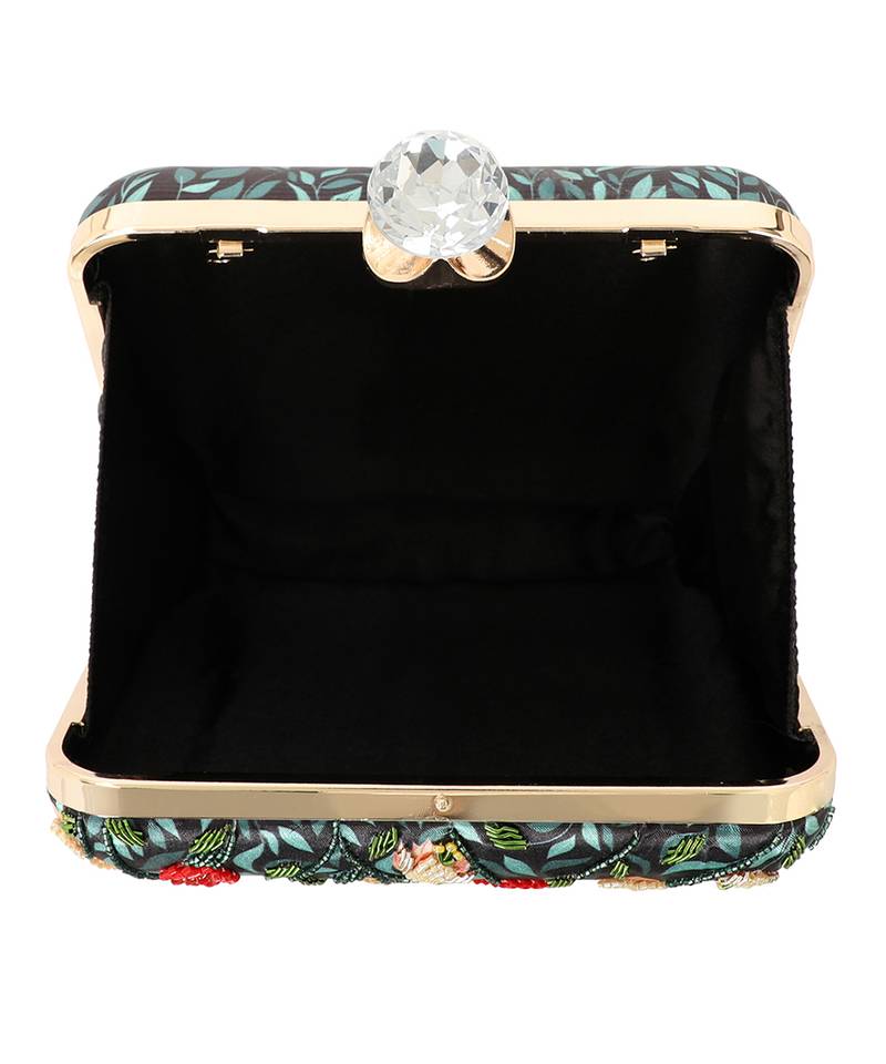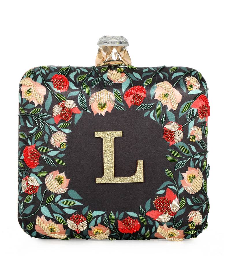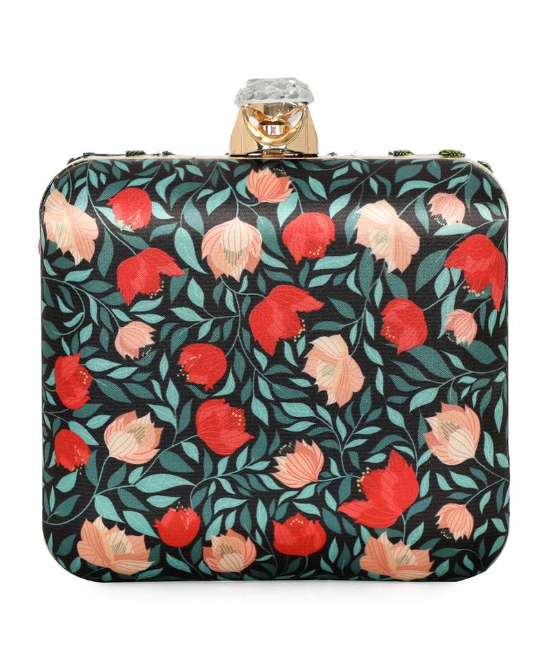 | Product Description | Showcases Vibrant Black, Green, And Red Floral Printed Back With Elegant Embroidered Detailing On The Front Panel. Features A Standout Alphabet 'l' Motif For Personalized Expression. Structured Box Silhouette With Click Closure Secures Essentials Stylishly. Comes With A Shoulder Strap For Comfortable Crossbody Or Handheld Carry. A Festive Pick For Events, Gifting, Or Personalized Fashion... |