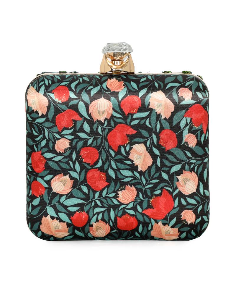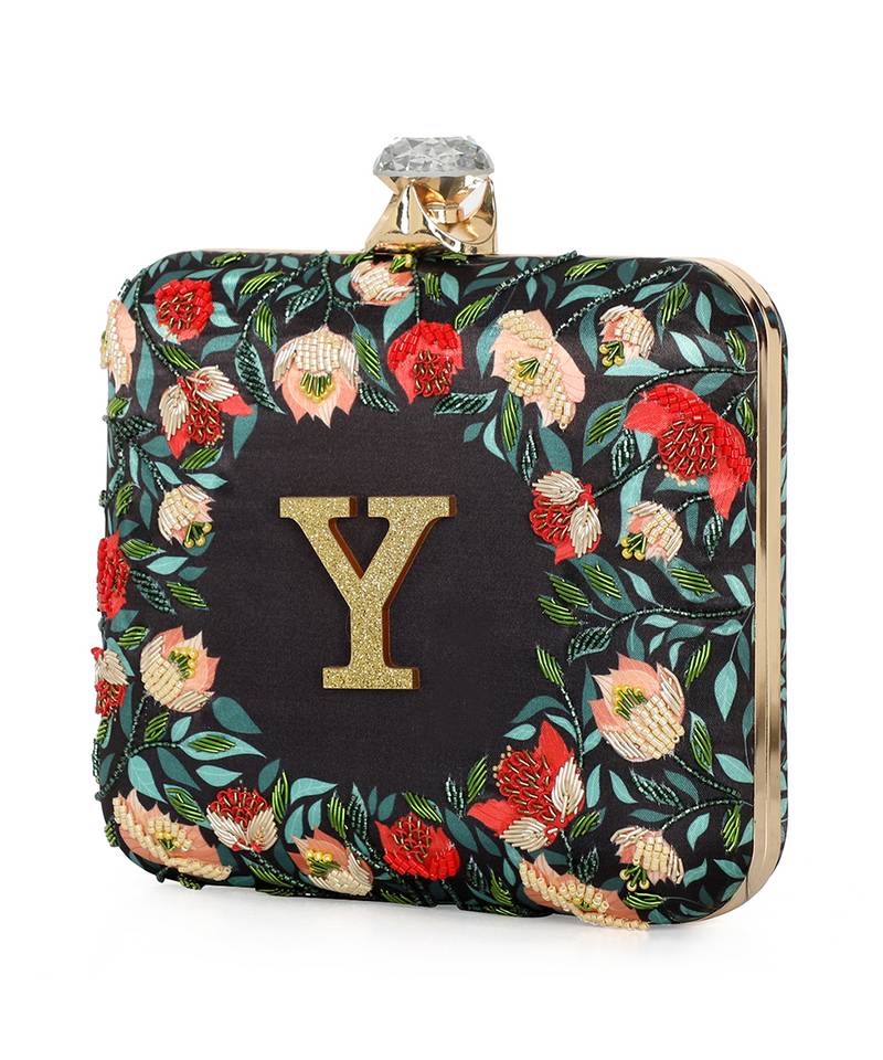 | Product Description | Showcases Vibrant Black, Green, And Red Floral Printed Back With Elegant Embroidered Detailing On The Front Panel. Features A Standout Alphabet 'y' Motif For Personalized Expression. Structured Box Silhouette With Click Closure Secures Essentials Stylishly. Comes With A Shoulder Strap For Comfortable Crossbody Or Handheld Carry. A Festive Pick For Events, Gifting, Or Personalized Fashion... |