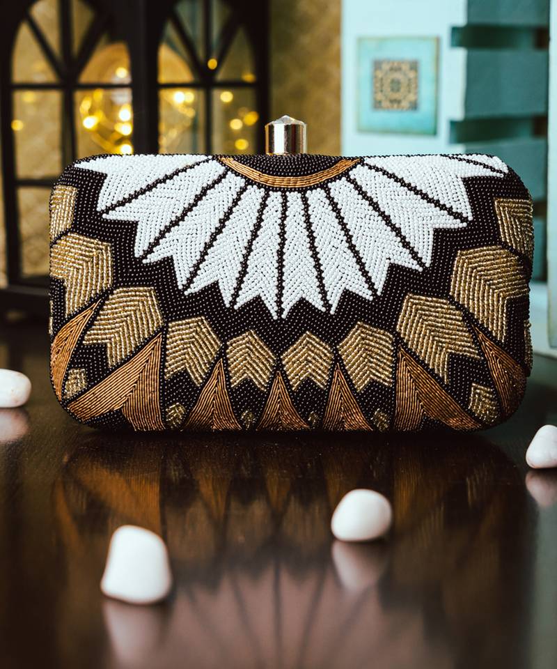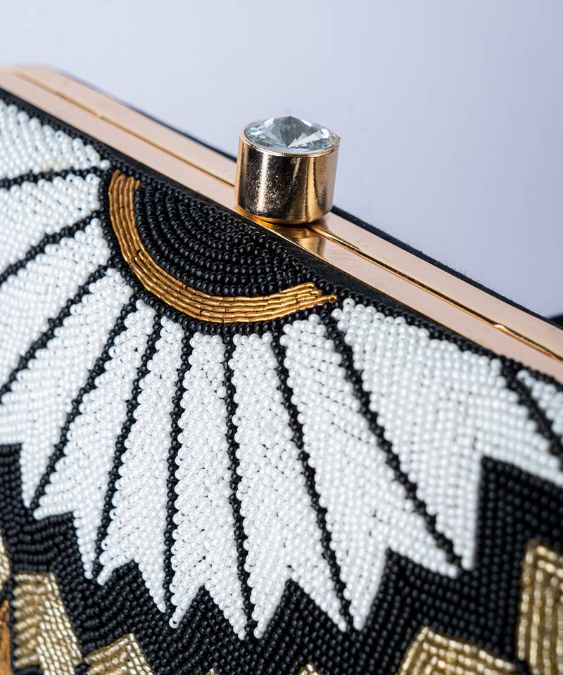 | Product Description | Hand Embroidered In Classic Black And White For A Bold Yet Versatile Aesthetic. Box Clutch Silhouette Adds Structure And A Refined Visual Appeal. One Main Compartment Secured With A Twist Closure For Stylish Access. Includes A Shoulder Strap For Hands Free Functionality And Flexible Wear. A Chic Accessory Ideal For Formal Gatherings, Festive Occasions, Or Everyday Statement Styling. |