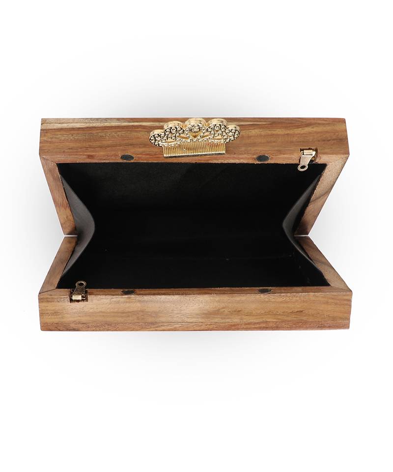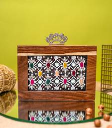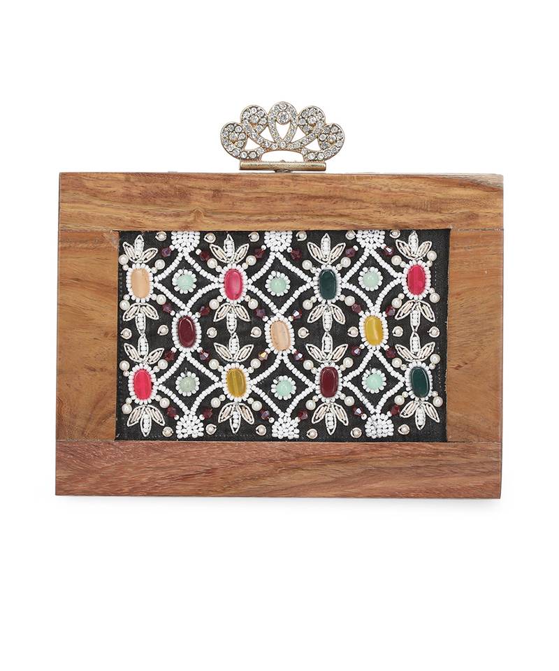 | Product Description | Box Clutch Crafted From Dark Wood With Black Accents And Multicolored Embroidery. Comes With A Detachable Shoulder Strap For Easy Styling. Click Lock Closure Secures Your Essentials In The Main Compartment. Rich Textures And Vibrant Detailing Make It A Standout Accessory. Style Note: Pair With Earthy Toned Sarees Or Statement Fusion Wear To Echo Its Handcrafted Flair. |