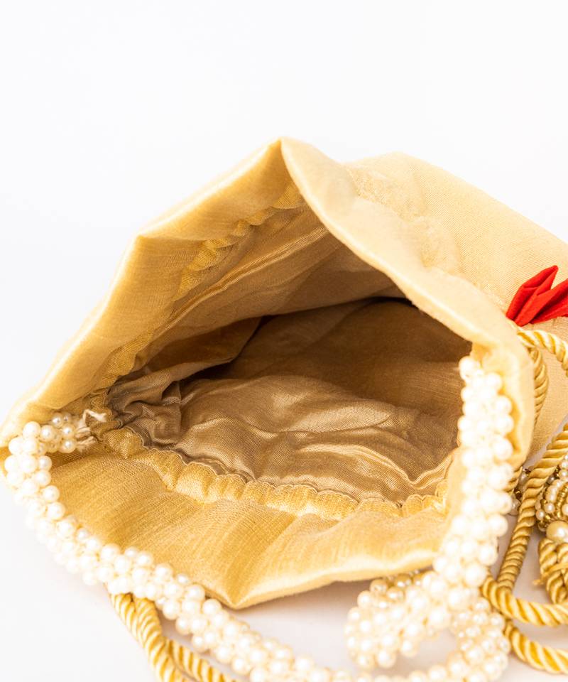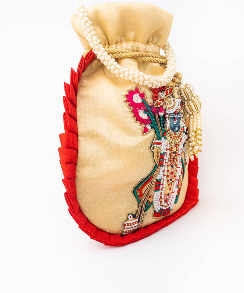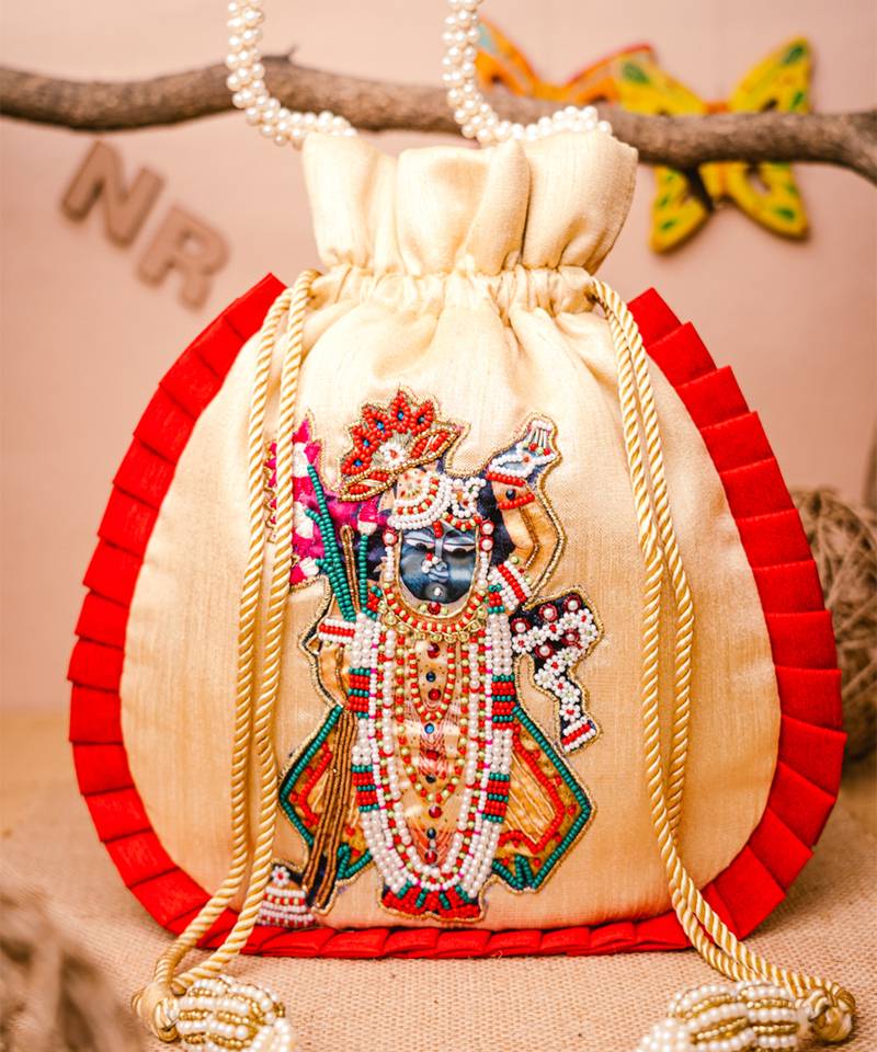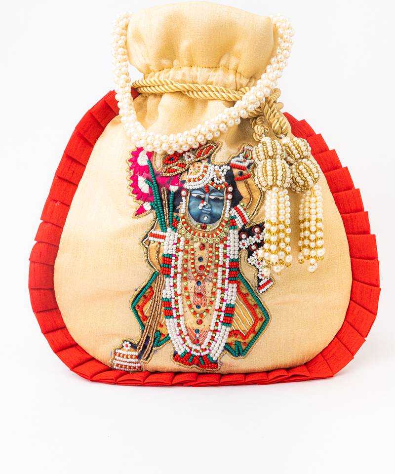 | Product Description | Embroidered In Soothing Cream And Vibrant Red Tones With Detailed Jagannath Inspired Motifs For A Spiritual Touch. Classic Potli Silhouette Enhanced By A Drawstring Closure For Secure And Traditional Styling. Includes One Main Compartment Ideal For Carrying Small Festive Or Devotional Essentials. Comes With A Wrist Loop For Graceful Handheld Wear And Ornamental Presentation. A Culturally Rich... |