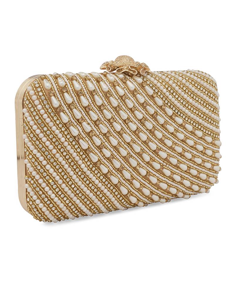 | Product Description | Structured Box Silhouette With Elegant White And Gold Embroidery. Satin Base With Shimmer Threadwork For A Refined Festive Finish. Comes With A Detachable Shoulder Strap For Hands Free Styling. One Main Compartment Secured With A Twist Lock Closure. Style Note: Pair With Ivory Lehengas Or Gold Toned Sarees For A Timeless Rakhi Or Bridal Ready Accent. |