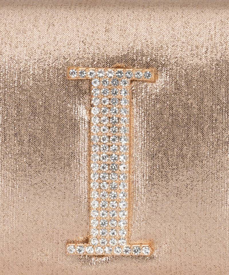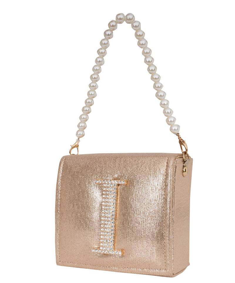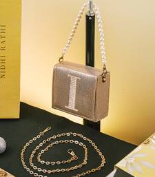 | Product Description | Structured Box Clutch In Gleaming Gold Tone With Diamond Style Embellishments. Features A Bold ‘I’ Alphabet Accent For Personalized Charm. Includes A Detachable Shoulder Strap For Hands Free Styling Flexibility. Button Closure Secures Essentials Within The Roomy Main Compartment. Luxe And Expressive—Perfect For Gifting, Bridal Wear, Or Festive Edits With A Touch Of Identity. |