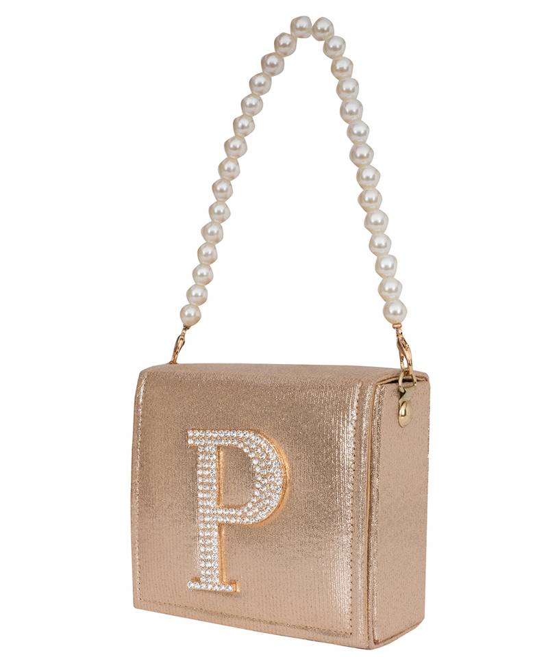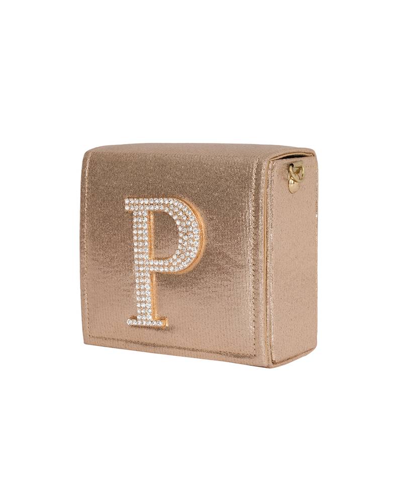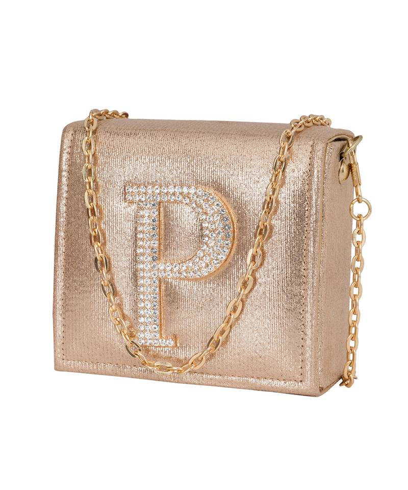 | Product Description | Structured Box Clutch In Gleaming Gold Tone With Diamond Style Embellishments. Features A Bold ‘P’ Alphabet Accent For Personalized Charm. Includes A Detachable Shoulder Strap For Hands Free Styling Flexibility. Button Closure Secures Essentials Within The Roomy Main Compartment. Luxe And Expressive—Perfect For Gifting, Bridal Wear, Or Festive Edits With A Touch Of Identity. |