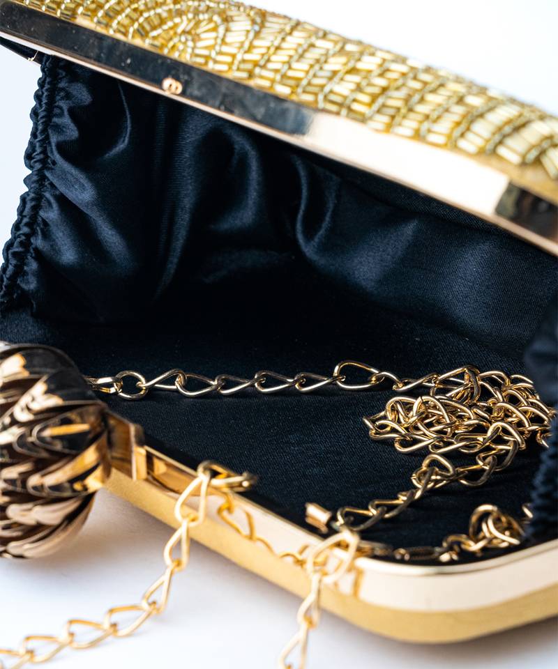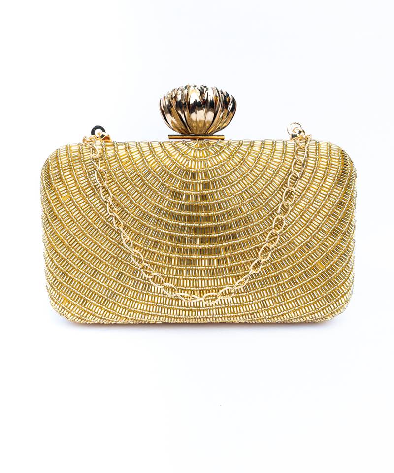 | Product Description | Lavishly Hand Embellished In Glowing Gold Tones For A Regal And Festive Finish. Sculpted Box Silhouette Adds A Bold Contemporary Touch To Ethnic Elegance. Includes One Main Compartment Secured With A Click Closure For Safe And Stylish Storage. Comes With A Detachable Shoulder Chain For Flexible Hands Free Wear. A Striking Accessory Perfect For Weddings, Receptions, Or Special Events With... |