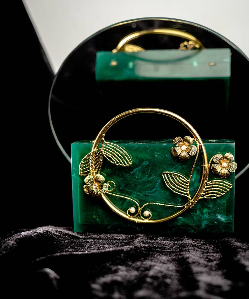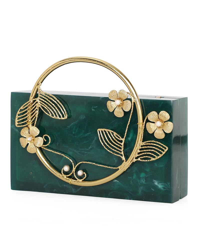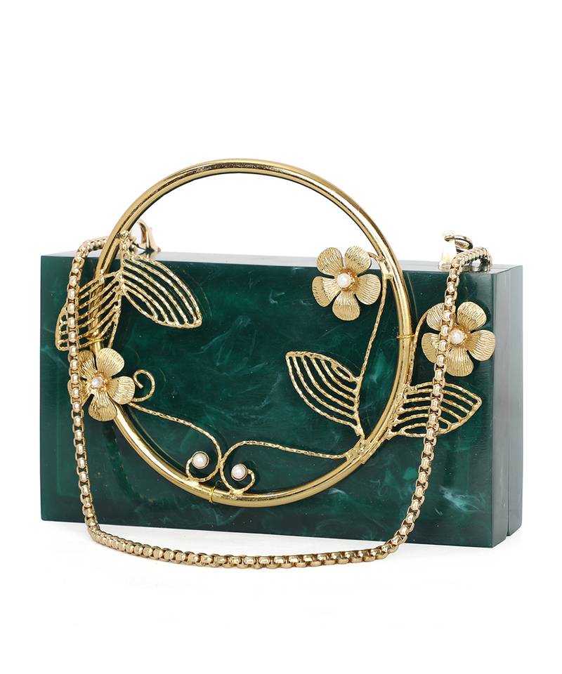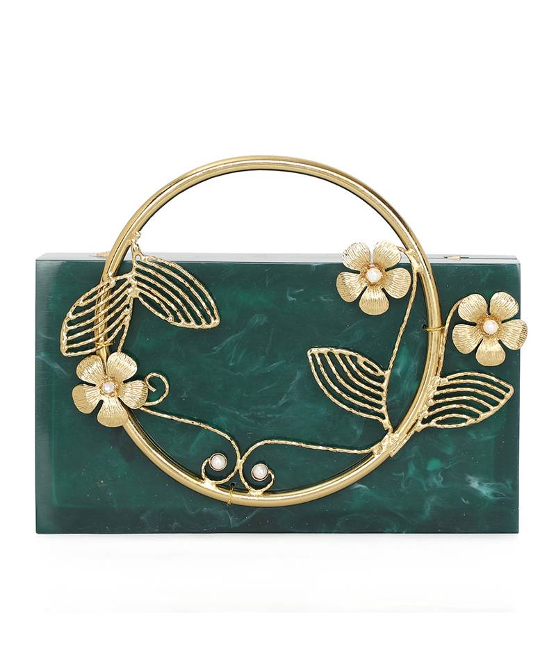| Product Description | Luxe Velvet Base With Gold Toned Embellishments. Compact Box Silhouette With Structured Finish. Includes Detachable Shoulder Strap For Versatility. Single Main Compartment With Secure Click Closure. Style Note: Pair With A Silk Saree Or Lehenga For A Regal Festive Accent. |