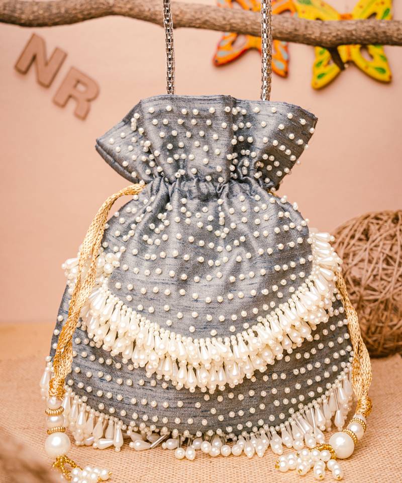 | Product Name | Grey Pearl Embroidered Potli Bag | |