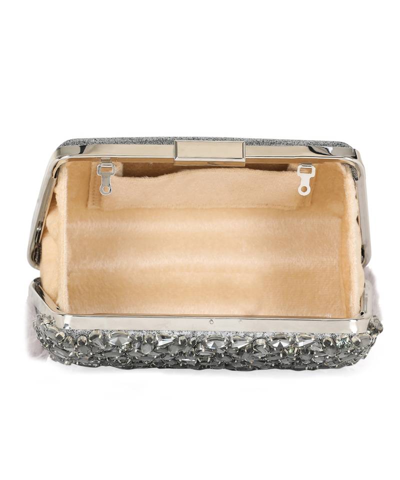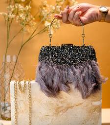| Product Description | Structured Box Silhouette With Feather Detailing In Grey Tones. Gunmetal Finish Adds A Sleek, Modern Edge To The Design. Comes With A Detachable Shoulder Strap For Styling Flexibility. Single Main Compartment Secured With A Twist Lock Closure. Style Note: Pair With Metallic Gowns Or Monochrome Sarees For A Bold Evening Statement. |