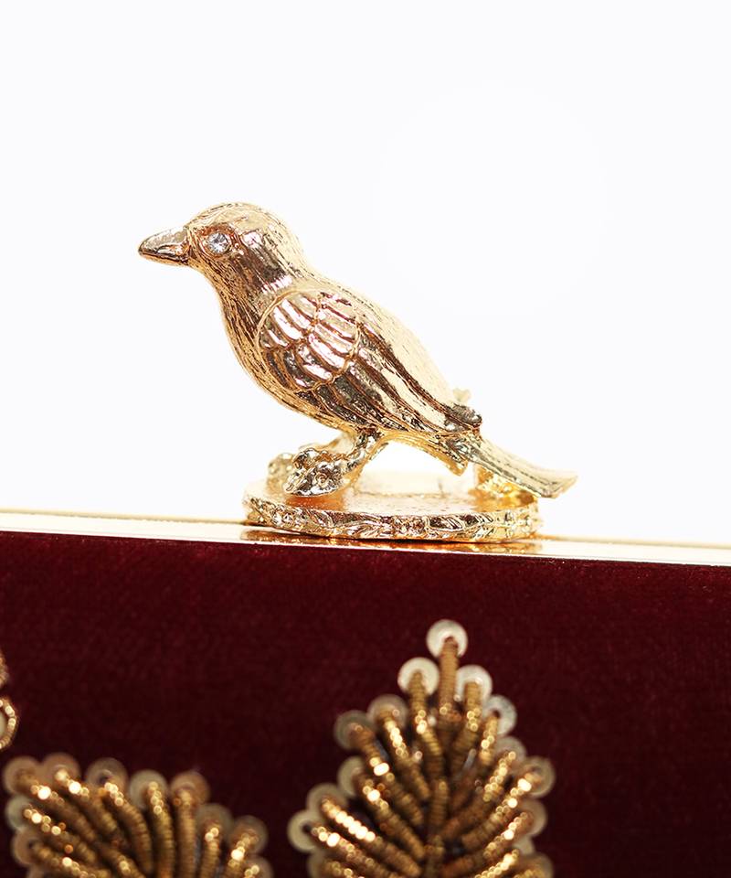 | Product Description | Embroidered In Regal Maroon And Gold Tones For A Sophisticated, Celebration Ready Look. Structured Box Silhouette Offers Form And Visual Impact For Ethnic Or Formal Ensembles. One Main Compartment Secured With A Twist Closure Ensures Practical Elegance. Comes With A Shoulder Strap For Hands Free Comfort And Versatile Styling. An Ideal Clutch For Weddings, Festive Occasions, Or Luxe Evening... |