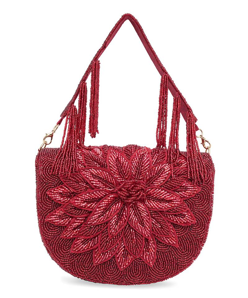 | Product Description | Deep Maroon Silk Base With Intricate Bead Embroidery And Tonal Embellishments. Foldover Silhouette With Button Closure And Wrist Loop For Graceful Carrying. One Main Compartment To Hold Essentials—Lipstick, Cards, Keys. Ideal For Bridal Edits, Festive Gifting, Or Evening Wear. Style Note: Pair With Beige Sarees, Gold Lehengas, Or Wine Toned Gowns For A Rich, Regal Accent. |