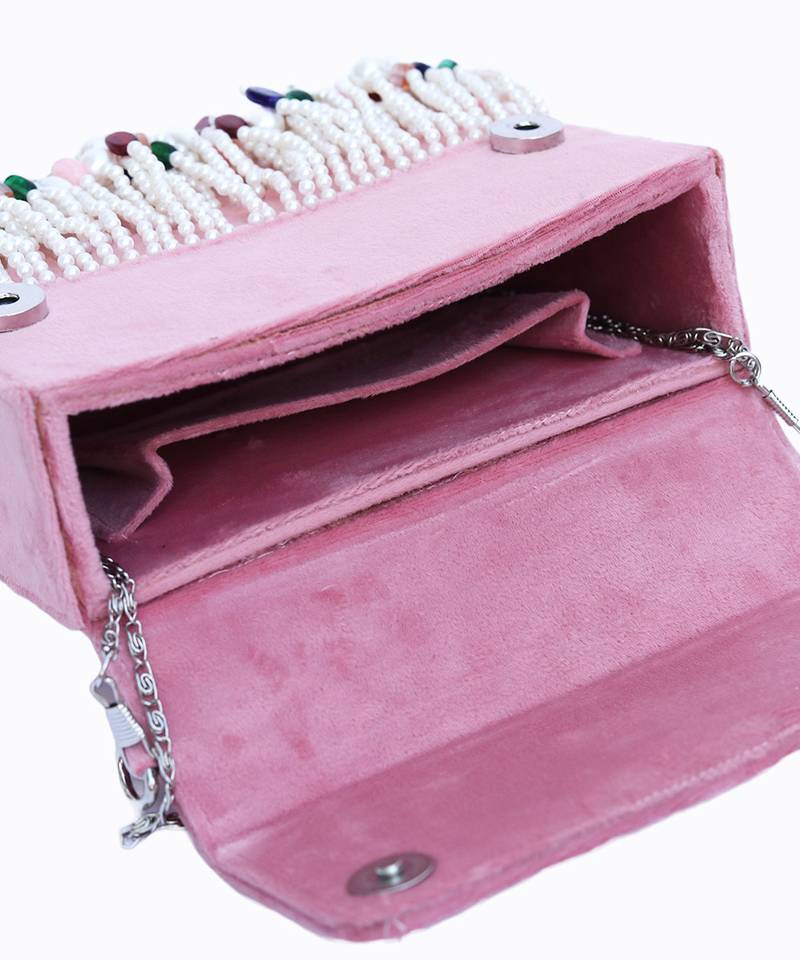 Pink beads embroidered clutch