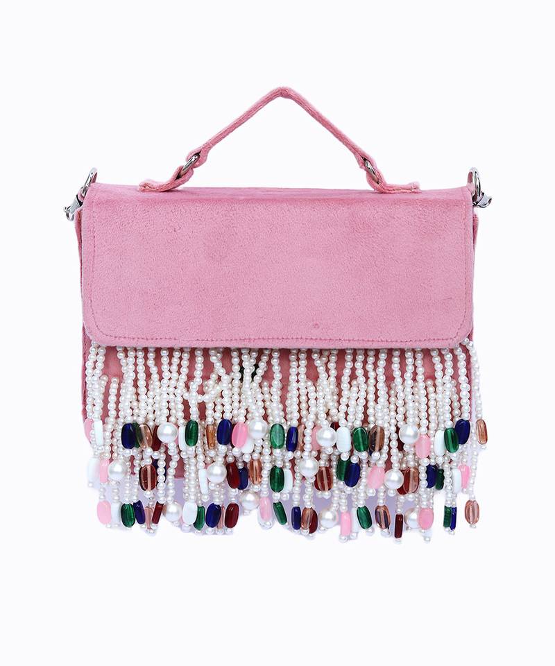 | Product Description | Embellished In Romantic Pink And White Tones For A Feminine, Festive Look. Tassel Detailing Adds Movement And Charm To The Compact Purse Silhouette. One Main Compartment Secured With A Button Closure For Easy And Secure Storage. Comes With A Shoulder Strap For Hands Free Comfort And Versatile Styling. A Sweet Pick For Bridal Edits, Daytime Functions, Or Curated Pastel Gifting Drops. |