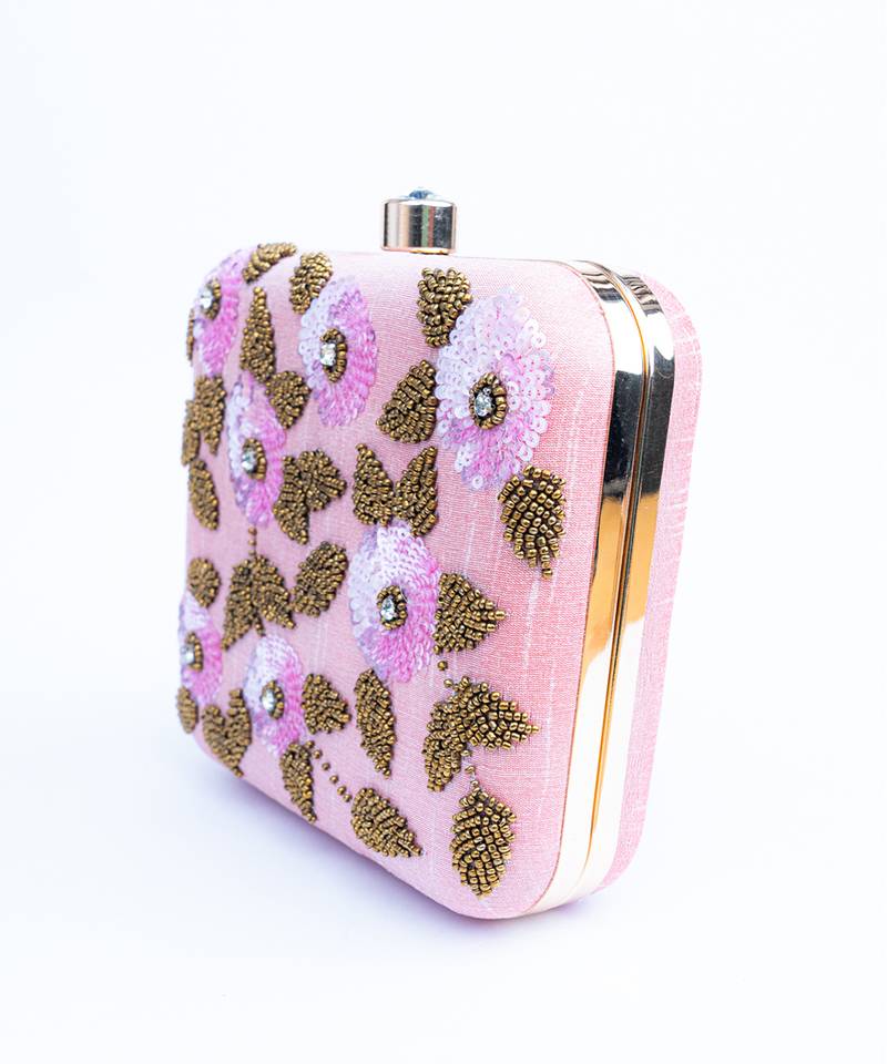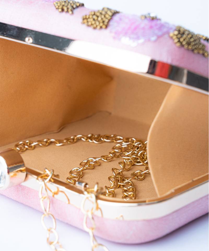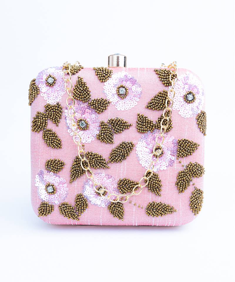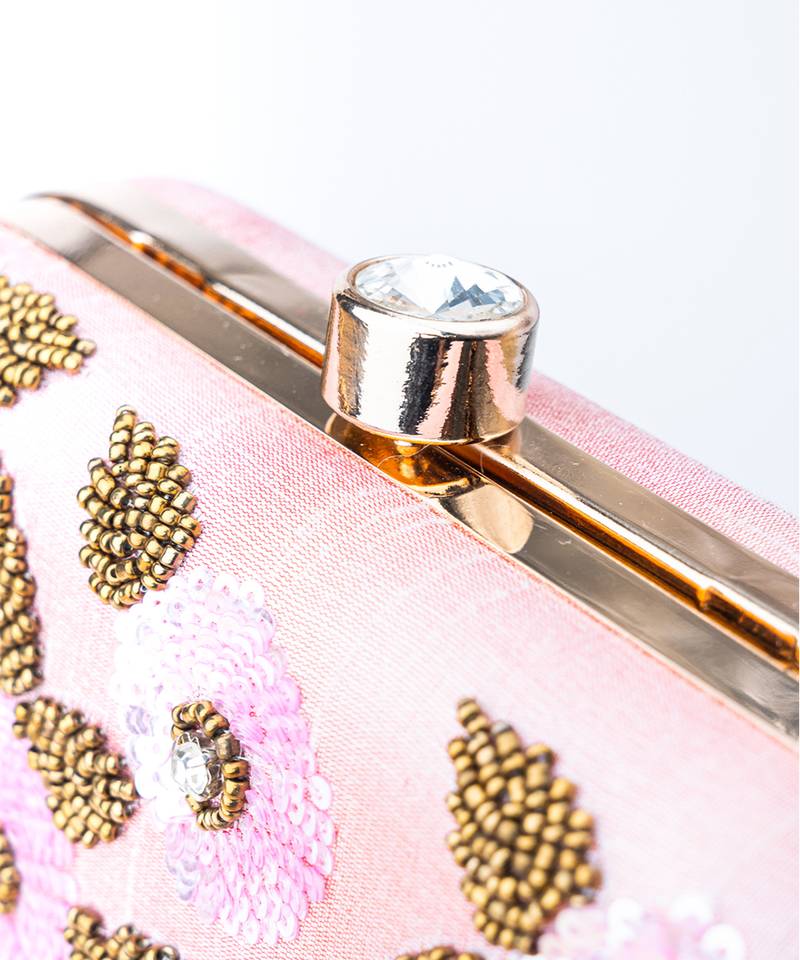| Product Description | Embroidered In Pastel Pink And Shimmering Gold Tones For A Delicate, Celebratory Look. Structured Box Silhouette Blends Ethnic Charm With Contemporary Refinement. Features One Main Compartment Secured With A Twist Closure For Secure And Elegant Storage. Comes With A Shoulder Strap For Hands Free Wear And Effortless Styling. A Standout Accessory Perfect For Mehendi, Weddings, Or Festive... |