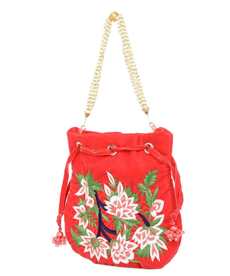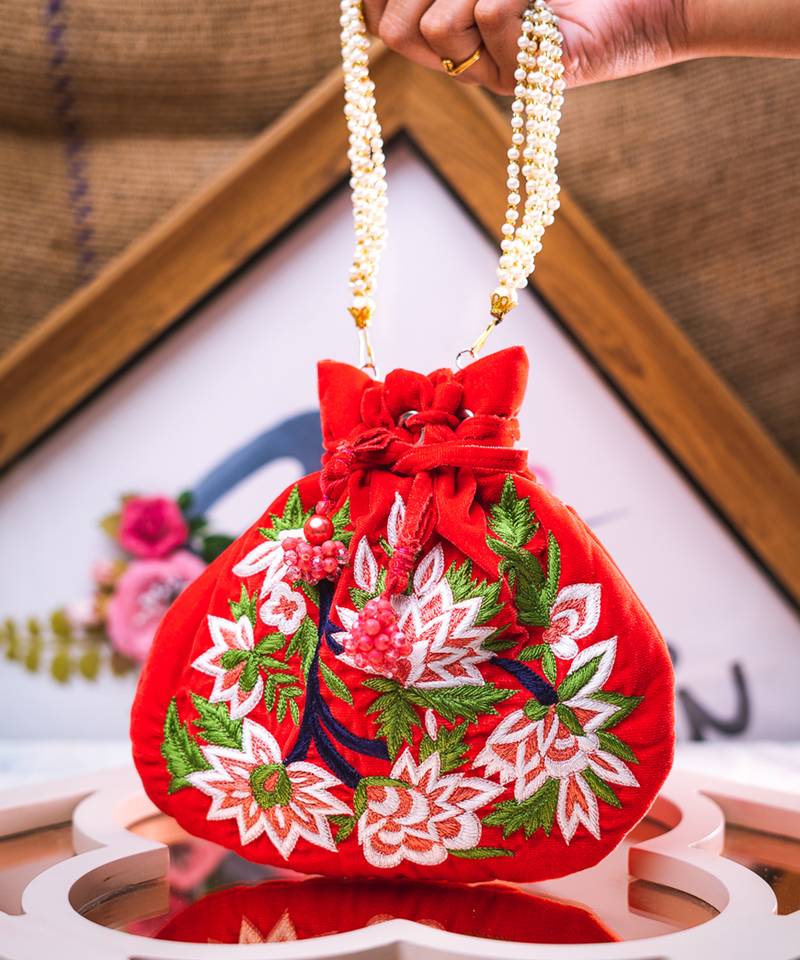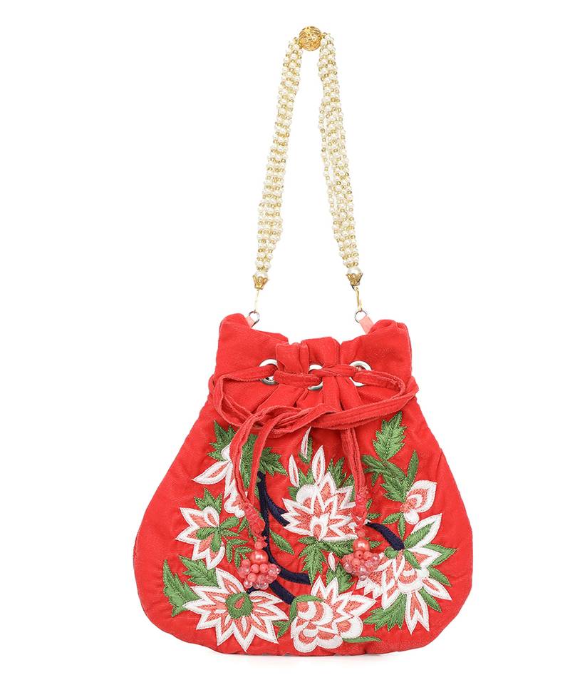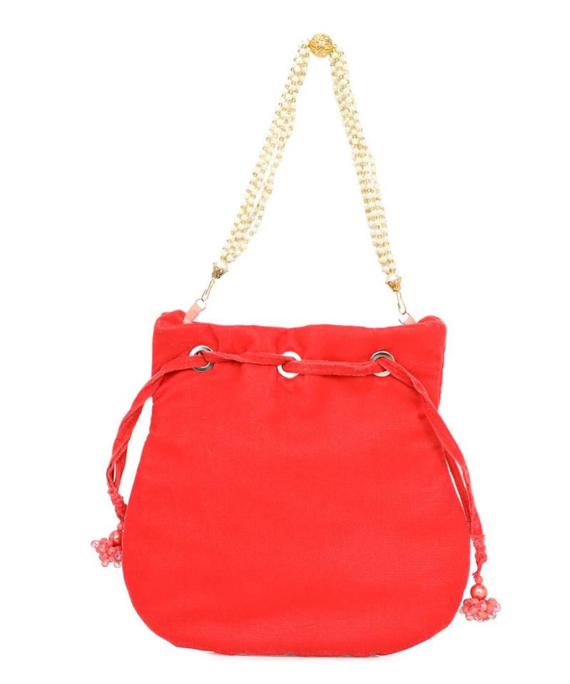 | Product Description | Red Potli Clutch Adorned With Intricate Floral Embroidery. Comes With A Matching Wrist Loop For Easy, Stylish Carry. Features A Classic Drawstring Closure For Secure Storage. Spacious Main Compartment Holds Essentials With Grace. Style Note: Pair With Silk Sarees Or Lehenga Sets To Add A Festive Flourish. |