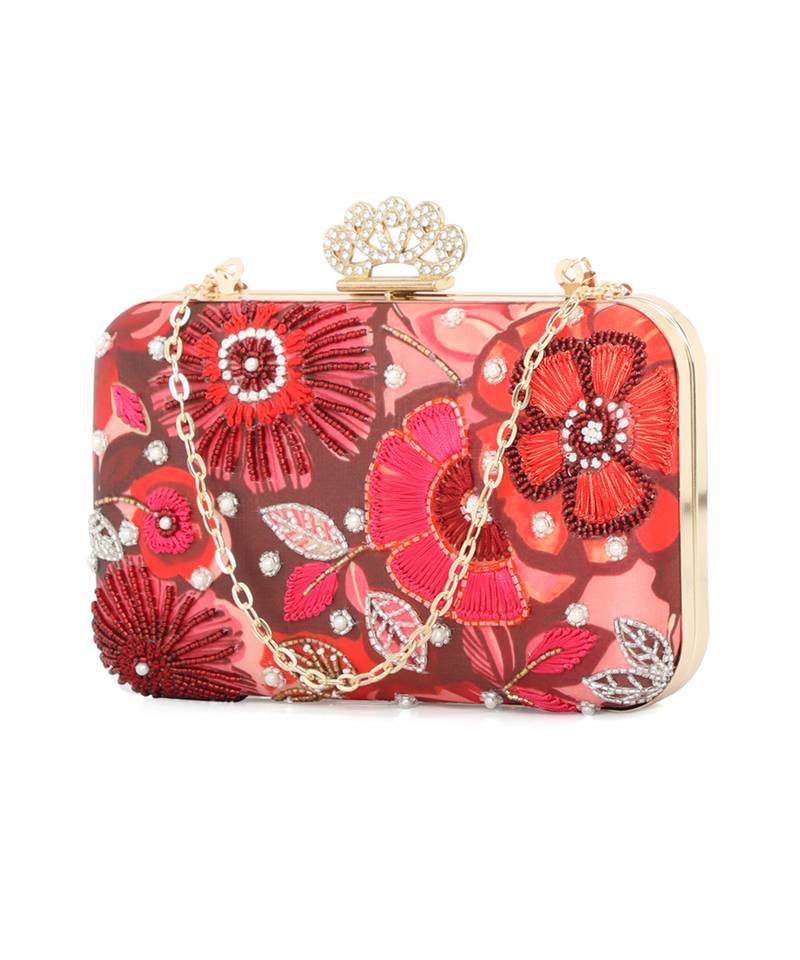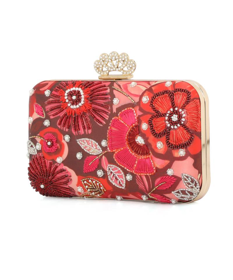 | Product Description | Red Toned Box Clutch With Floral Print And Artisanal Beaded Embroidery. Detachable Shoulder Strap Offers Styling Versatility. Twist Lock Closure Keeps Essentials Tucked In Securely. Bold And Elegant—Perfect For Evening Functions And Festive Gatherings. Style Note: Style With Embroidered Lehengas Or Solid Ethnic Wear For High Impact Glamour. |