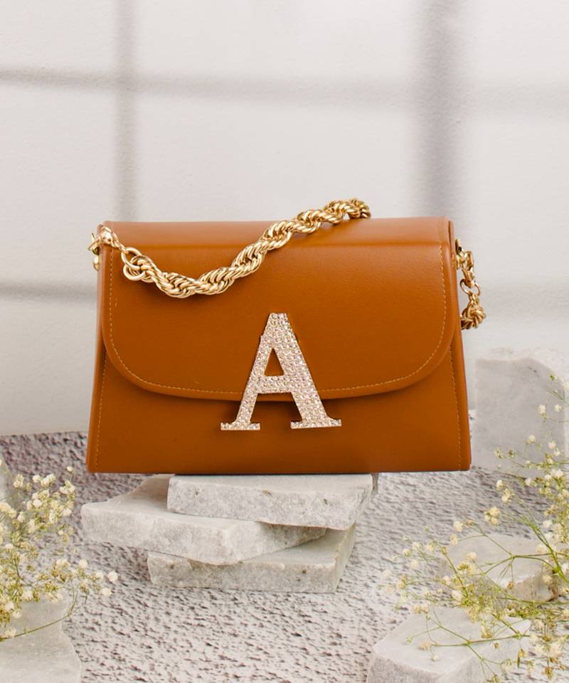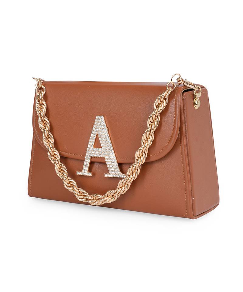 | Product Description | Embellished In Rich Tan And Gold Tones For A Luxe, Occasion Ready Aesthetic. Highlighted With A Bold Alphabet ‘A’ Motif On The Front For A Unique Personalized Touch. Structured Box Silhouette Features A Secure Button Closure For Convenience And Style. Comes With A Shoulder Strap For Hands Free Ease And Versatile Wear. A Refined Accessory Ideal For Festive Events, Personalized Gifting, Or... |