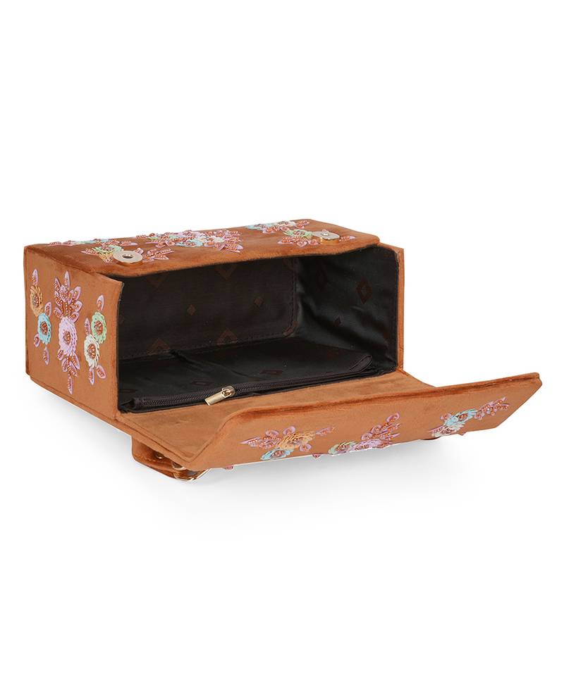 | Product Description | Foldover Clutch In Classic Tan, Featuring Vibrant Multicolored Embroidery For Artistic Contrast. Equipped With A Detachable Shoulder Strap For Easy, Hands Free Wear. Button Closure Secures Essentials Inside The Roomy Main Compartment. Earthy Yet Festive—Perfect For Daytime Weddings Or Ethnic Chic Outings. Style Note: Pair With Beige Or Rust Toned Shararas Or Printed Kurtas To Highlight Its Warm... |