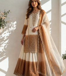 White::Brown heavy dual tone star georgette with embroidery thread work 3pc