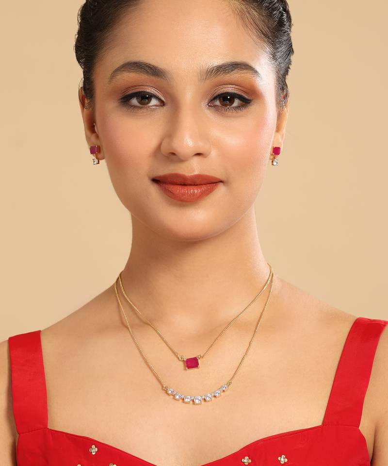 Product Name | American Diamond Ruby Airia Layered Necklace Set | |