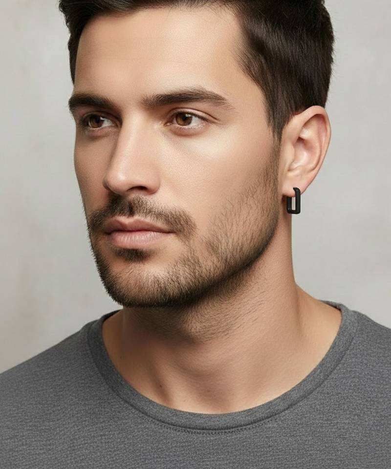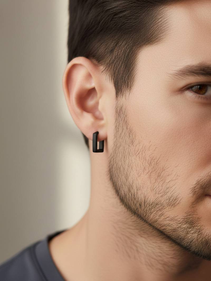 | Product Description | Men's Black Rhodium Plated Geomatric Shaped Hoop Earrings These Men’s Black Square Huggie Hoop Earrings Offer A Bold Twist On A Classic Design. Crafted With A Sleek Geometric Shape And Polished Finish, They Deliver A Sharp, Contemporary Edge. The Compact Huggie Style Ensures A Secure And Comfortable Fit, Making Them Ideal For Everyday Wear. Perfect For Adding A Subtle Statement To Casual Or Street Style Outfits, These Earrings Combine Minimalist Design With Strong Masculine Appeal. |