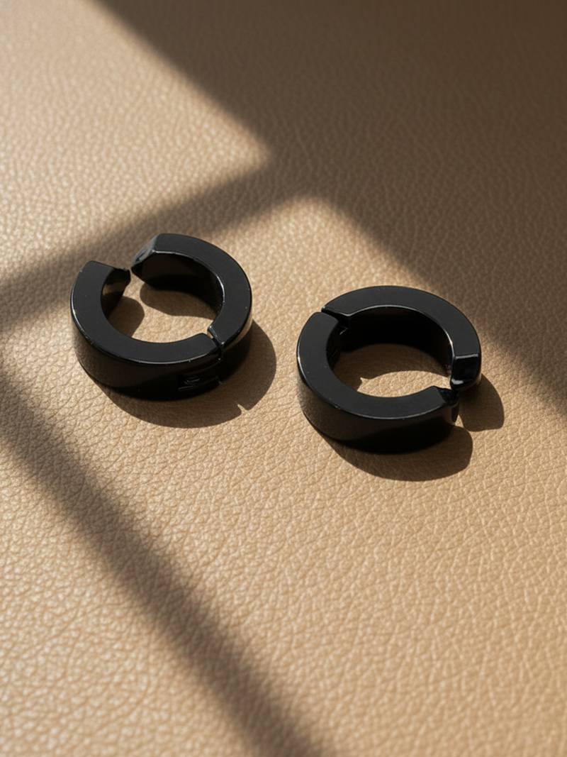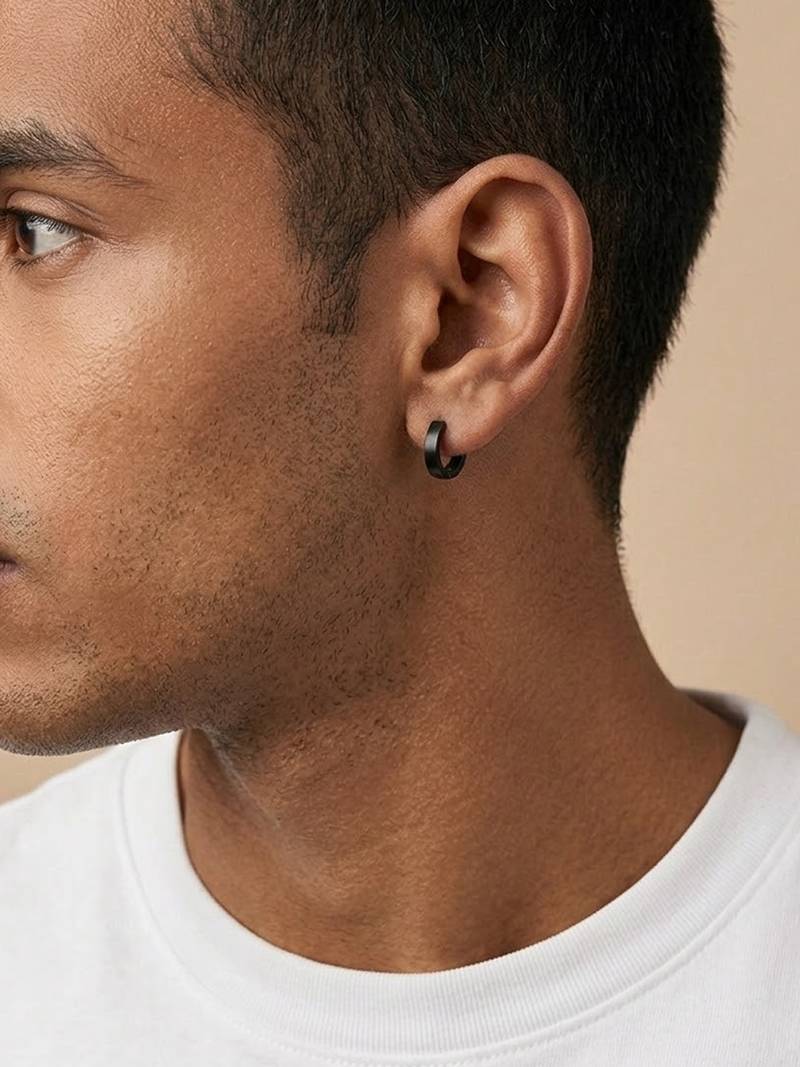| Product Description | Men's Black Rhodium Plated Hoop Earrings Sleek, Bold, And Effortlessly Modern, These Men’s Black Stainless Steel Huggie Hoop Earrings Are Designed For Everyday Confidence. Featuring A Smooth, Polished Finish In A Deep Black Tone, They Offer A Clean And Minimal Look That Pairs Perfectly With Casual, Street, Or Smart Casual Outfits. The Sturdy Hinged Closure Ensures A Secure And Comfortable Fit Throughout The Day. Durable And Versatile, These Earrings Are A Must Have Accessory For Men Who Appreciate Understated Style With A Strong Edge. |