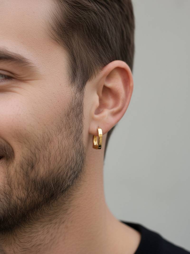 | Product Description | Men's Gold Plated Geomatric Shaped Hoop Earrings These Men’s Gold Tone Square Huggie Hoop Earrings Offer A Bold Twist On A Classic Design. Crafted With A Sleek Geometric Shape And Polished Finish, They Deliver A Sharp, Contemporary Edge. The Compact Huggie Style Ensures A Secure And Comfortable Fit, Making Them Ideal For Everyday Wear. Perfect For Adding A Subtle Statement To Casual Or Street Style Outfits, These Earrings Combine Minimalist Design With Strong Masculine Appeal. |