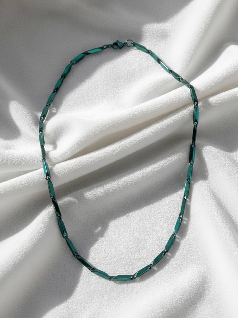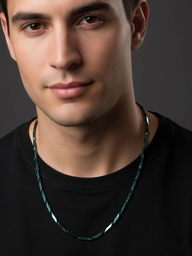 | Product Description | Men's Handcrafted Green Rhodium Plated Chain Stand Out With This Bold And Modern Men’s Green Iridescent Link Chain. Featuring Sleek, Elongated Links With A Vibrant Rainbow Finish, This Chain Reflects Light Beautifully To Create A Dynamic Color Shifting Effect. Its Smooth, Polished Surface Adds A Contemporary Edge, Making It Perfect For Streetwear Or Statement Styling. Durable And Lightweight, This Eye Catching Chain Can Be Worn Solo For Maximum Impact Or Layered For A Trend Forward Look. A Unique Accessory For Men Who Like To Express Their Individuality. |