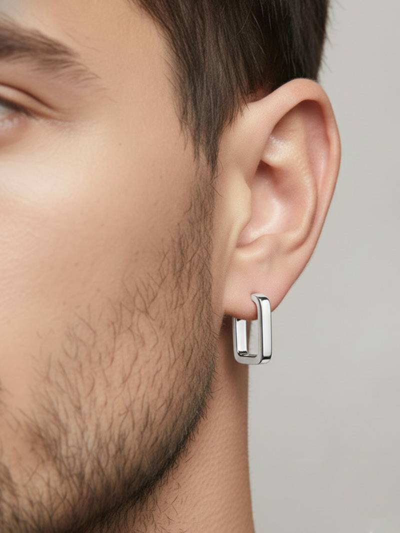 | Product Description | Men's Silver Plated Geomatric Shaped Hoop Earrings These Men’s Silver Square Huggie Hoop Earrings Offer A Bold Twist On A Classic Design. Crafted With A Sleek Geometric Shape And Polished Finish, They Deliver A Sharp, Contemporary Edge. The Compact Huggie Style Ensures A Secure And Comfortable Fit, Making Them Ideal For Everyday Wear. Perfect For Adding A Subtle Statement To Casual Or Street Style Outfits, These Earrings Combine Minimalist Design With Strong Masculine Appeal. |
