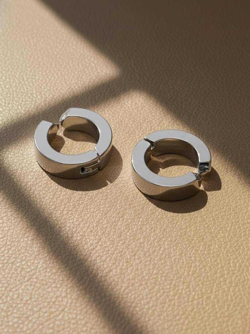 | Product Description | Men's Silver Plated Hoop Earrings Sleek, Bold, And Effortlessly Modern, These Men’s Silver Stainless Steel Huggie Hoop Earrings Are Designed For Everyday Confidence. Featuring A Smooth, Polished Finish In A Deep Silver Tone, They Offer A Clean And Minimal Look That Pairs Perfectly With Casual, Street, Or Smart Casual Outfits. The Sturdy Hinged Closure Ensures A Secure And Comfortable Fit Throughout The Day. Durable And Versatile, These Earrings Are A Must Have Accessory For Men Who Appreciate Understated Style With A Strong Edge. |