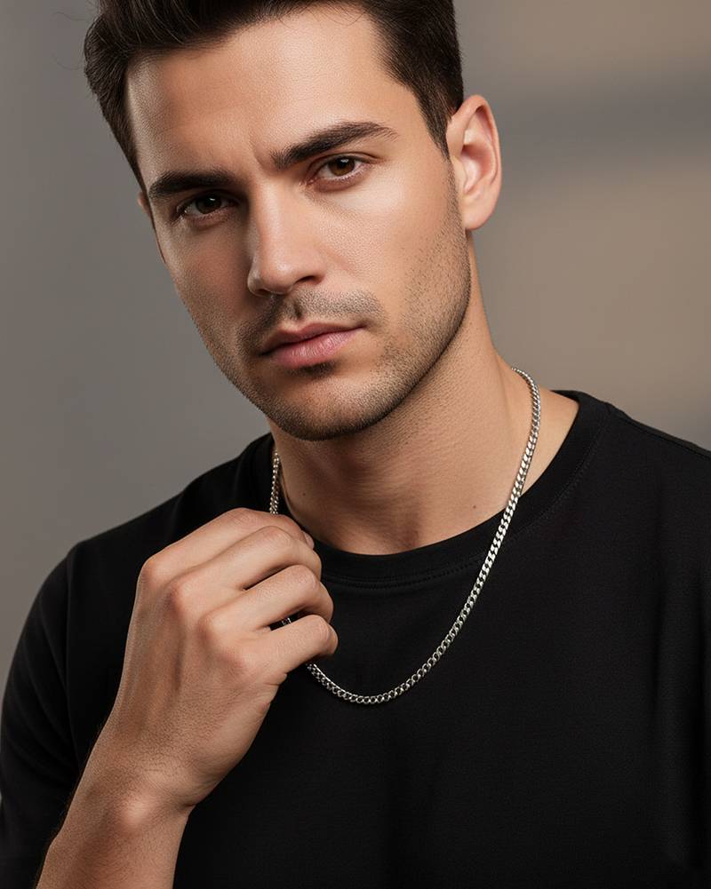 | Product Description | Men's Silver Plated Stainless Steel Chain This Men’s Silver Cuban Link Chain Is Crafted For A Strong, Confident Look. Featuring Closely Interlocked Flat Links, The Chain Delivers A Smooth, Polished Finish With A Sleek Shine. Its Sturdy Construction Ensures Durability, Making It Perfect For Daily Wear. Whether Styled Alone For A Classic Statement Or Layered With Other Pieces For A Modern Edge, This Chain Adds Effortless Sophistication To Both Casual And Formal Outfits. |