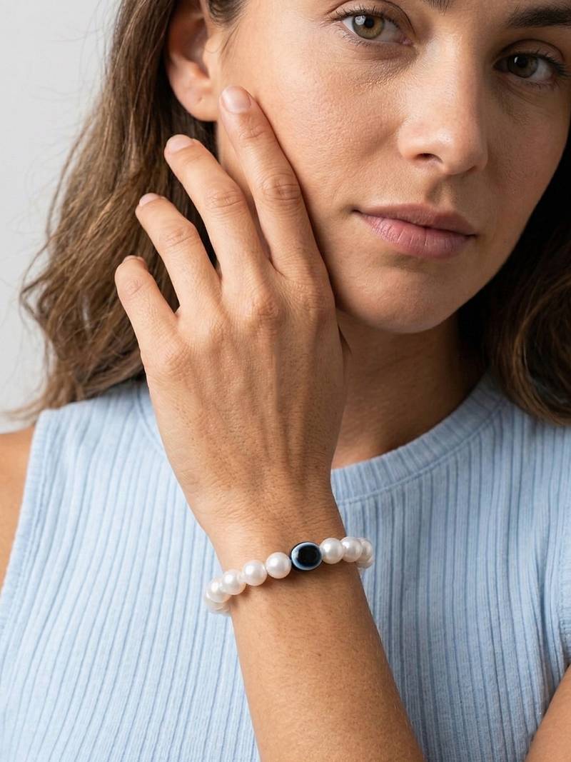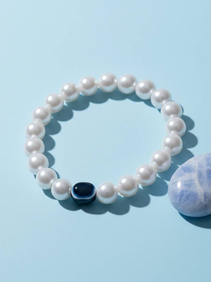 | Product Description | Black Evil Eye White Bracelet This Unisex White Pearl Bead Bracelet Combines Elegance With Protective Symbolism. Crafted With Smooth, Luminous White Beads, The Design Is Accented By A Striking Blue Evil Eye Charm At The Center, Believed To Attract Positivity And Ward Off Negative Energy. The Stretchable Band Ensures A Comfortable And Secure Fit For Everyday Wear. Perfect For Both Men And Women, This Bracelet Adds A Refined Touch To Any Outfit While Carrying A Timeless Spiritual Charm. |
