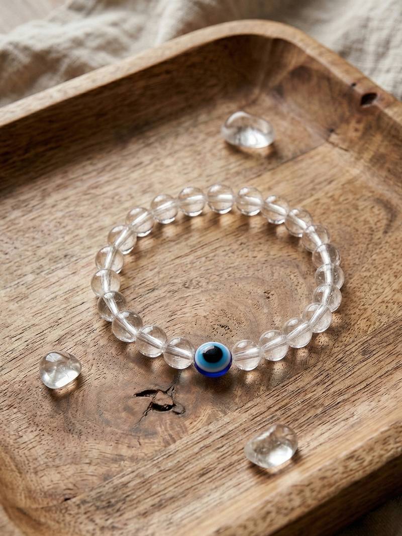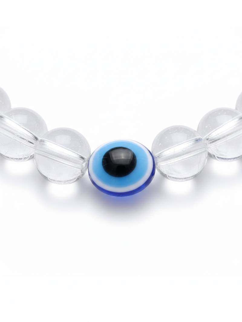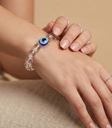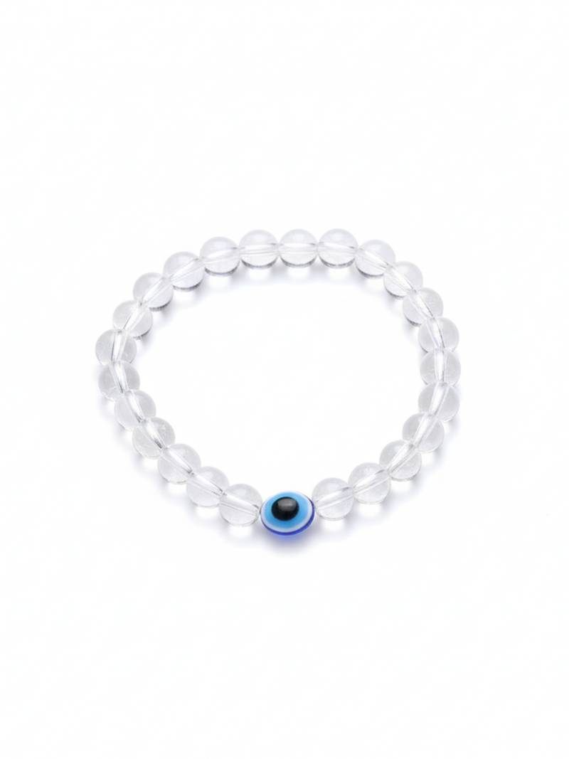 | Product Description | White Crystal Evil Eye Bracelet This Unisex Clear Bead Evil Eye Bracelet Blends Modern Elegance With Meaningful Design. Featuring Transparent Crystal Like Beads, The Bracelet Is Accented With Multiple Blue Evil Eye Charms That Represent Protection And Positive Energy. The Stretchable Band Ensures A Comfortable Fit For Both Men And Women, Making It Ideal For Daily Wear. Its Subtle Shine And Eye Catching Details Make It Perfect To Wear Alone Or Stacked With Other Bracelets For A Trendy Layered Look. |