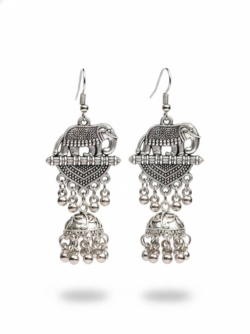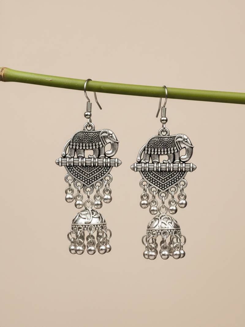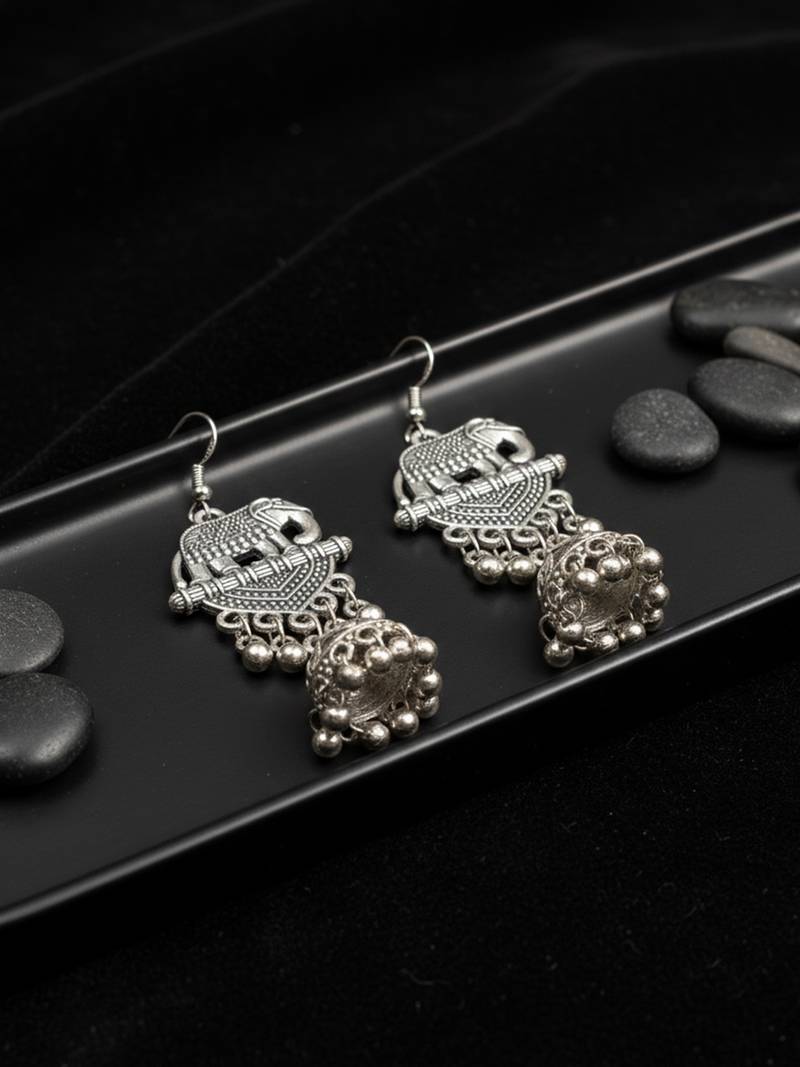 | Product Name | Women Elephant Design German Silver Oxidised Jhumka Earrings | |