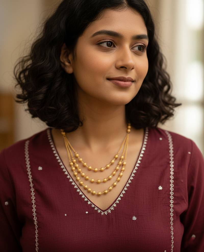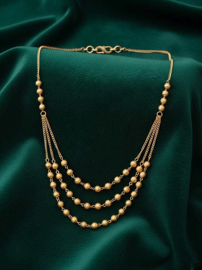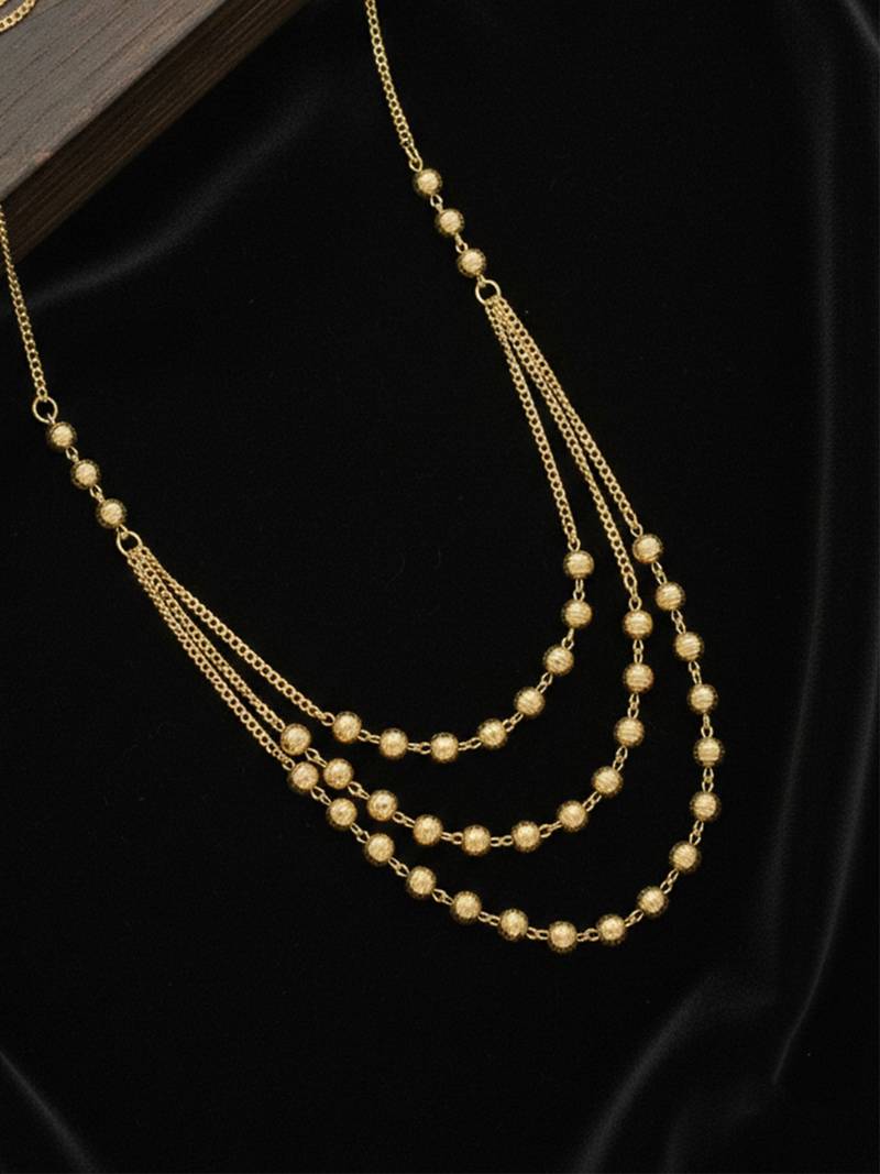 | Product Description | Women Gold Plated Artificial Beads Layered Chain This Women’s Gold Tone Layered Chain Features A Beautiful Multi Strand Design Adorned With Polished Bead Accents. The Cascading Layers Create A Rich, Elegant Look That Enhances The Neckline With Subtle Movement And Shine. Perfect For Festive Occasions, Weddings, And Traditional Celebrations, This Chain Adds A Touch Of Timeless Charm To Any Outfit. Lightweight Yet Statement Worthy, It Blends Classic Style With Refined Sophistication. |