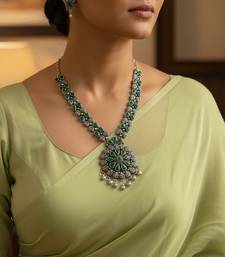 Nvr women oxidised silver finish necklace & earrings set with green stones