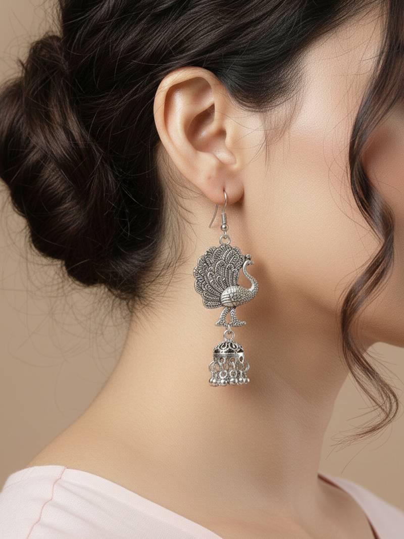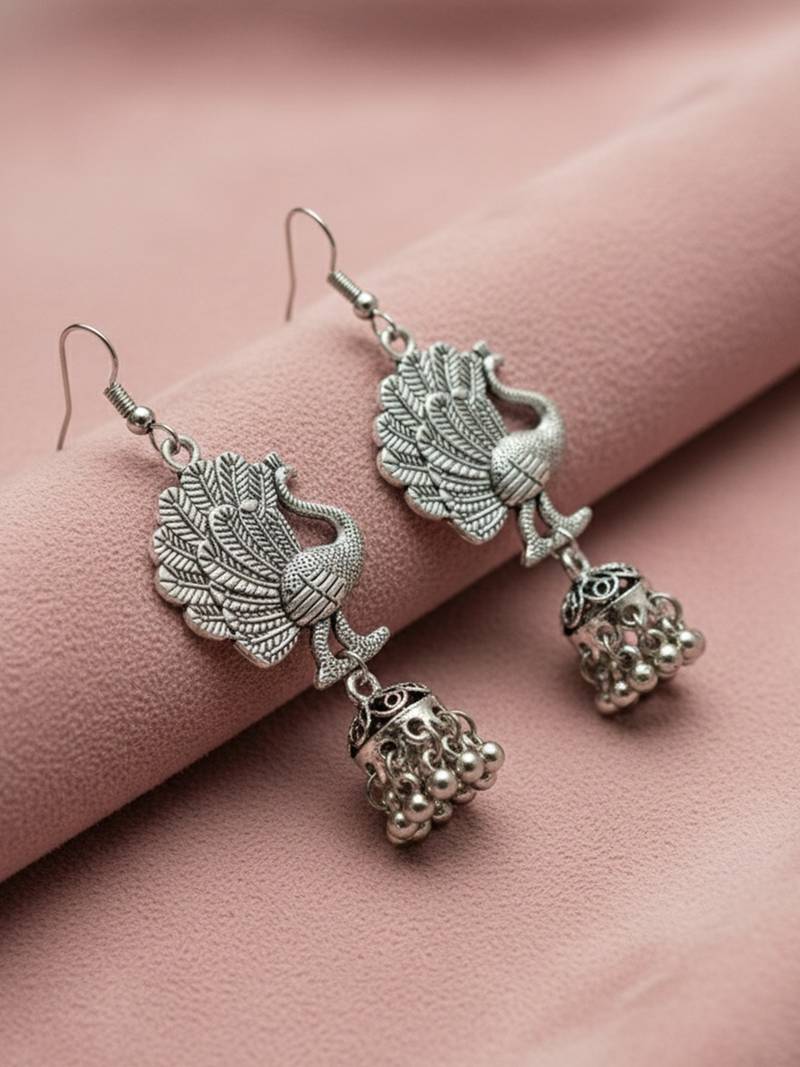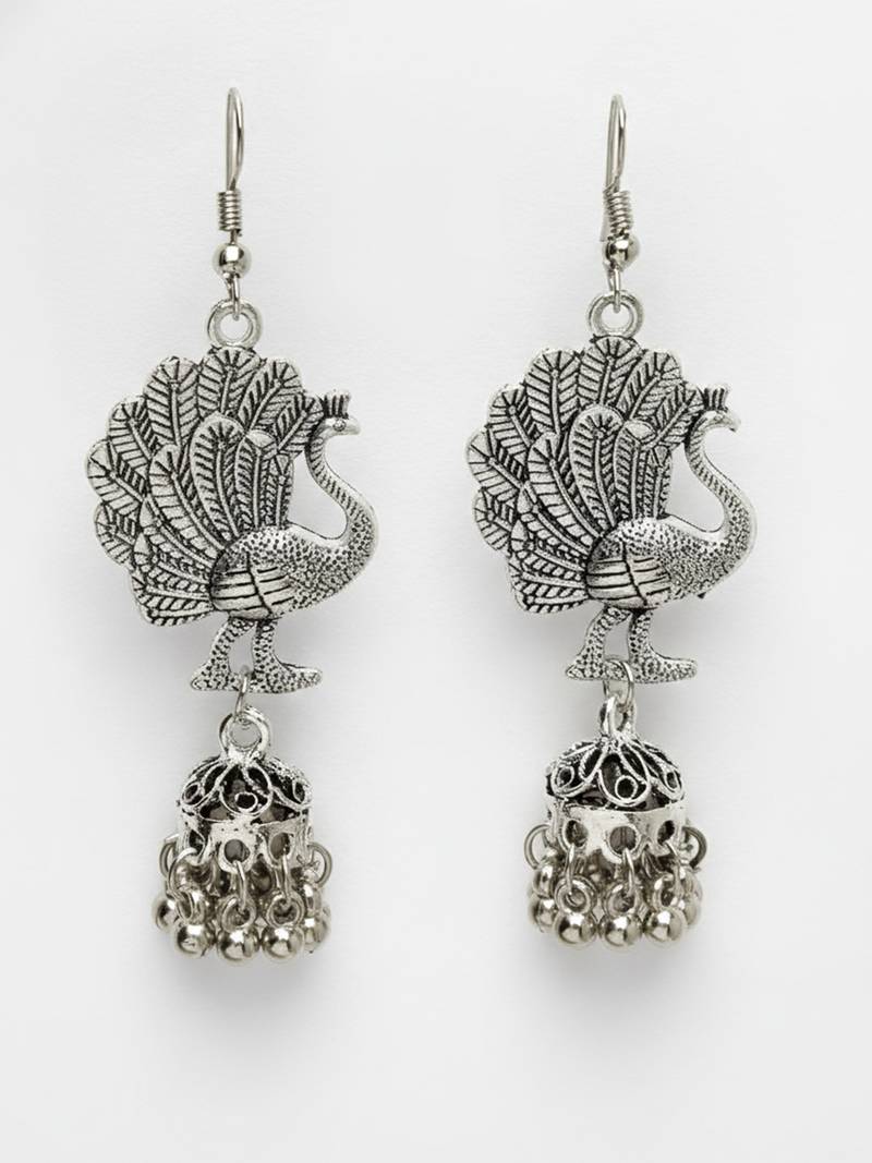 | Product Name | Women Peacock Design German Silver Oxidised Jhumka Earrings | |