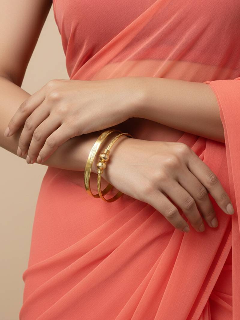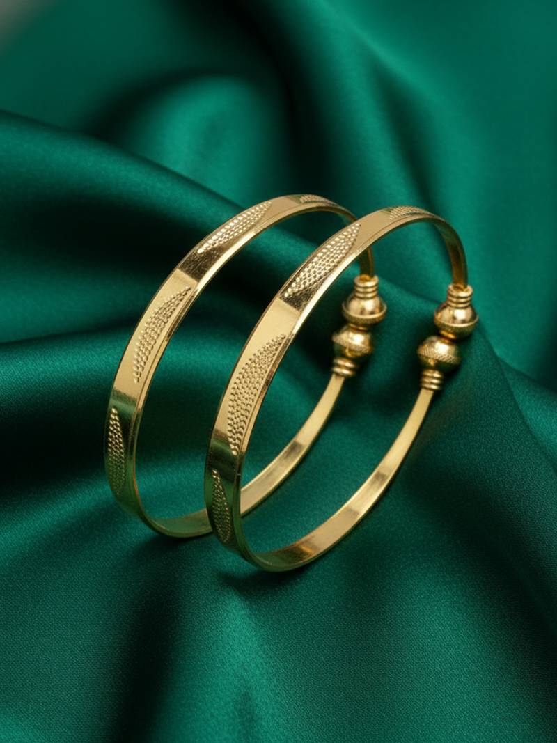 | Product Description | Women Set Of 2 Gold Plated Traditional Adjustable Kada Bangle Enhance Your Ethnic Charm With These Beautifully Crafted Gold Tone Designer Bangles. Featuring Elegant Bead Accents In Subtle Tones, These Bangles Blend Traditional Artistry With Contemporary Style. The Smooth Metallic Finish Paired With Detailed Embellishments Adds A Graceful Sparkle, Making Them Perfect For Festive Celebrations, Weddings, Or Special Occasions. Lightweight And Comfortable, They Can Be Worn As A Stacked Set For A Rich, Statement Look Or Paired With Other Bangles For A Personalized Style. A Timeless Addition To Any Jewelry Collection. |