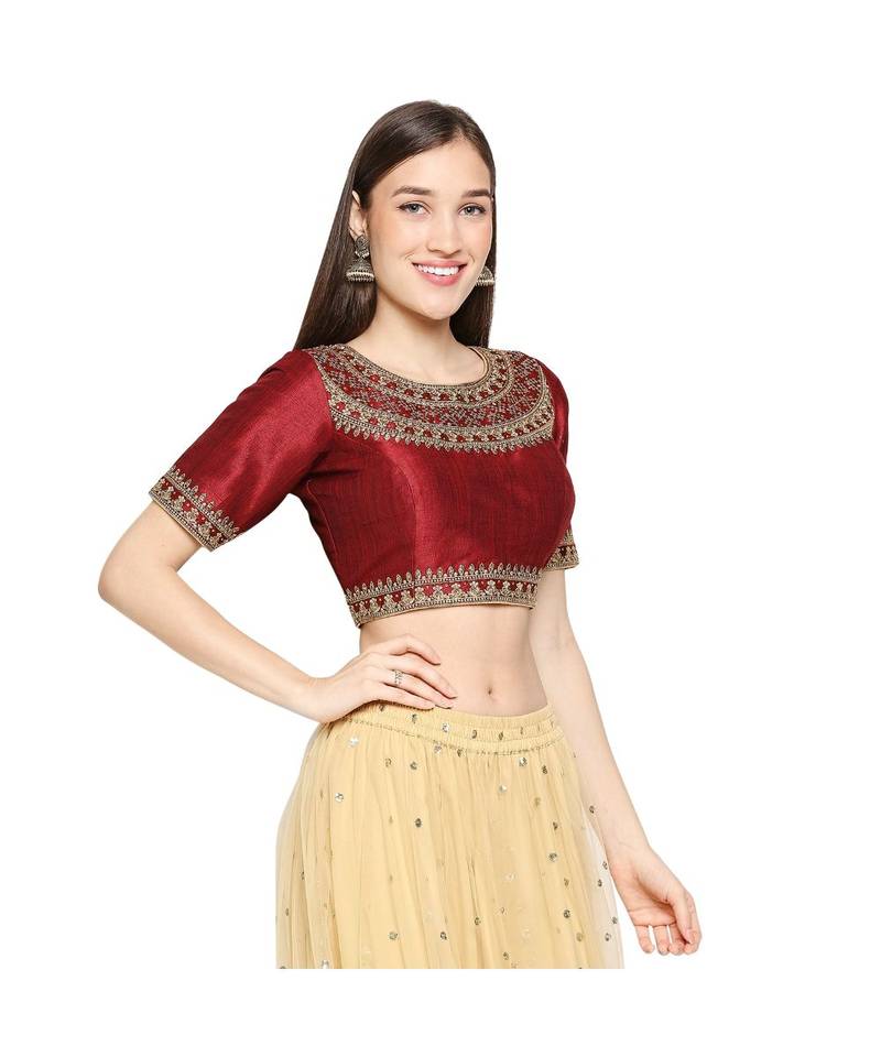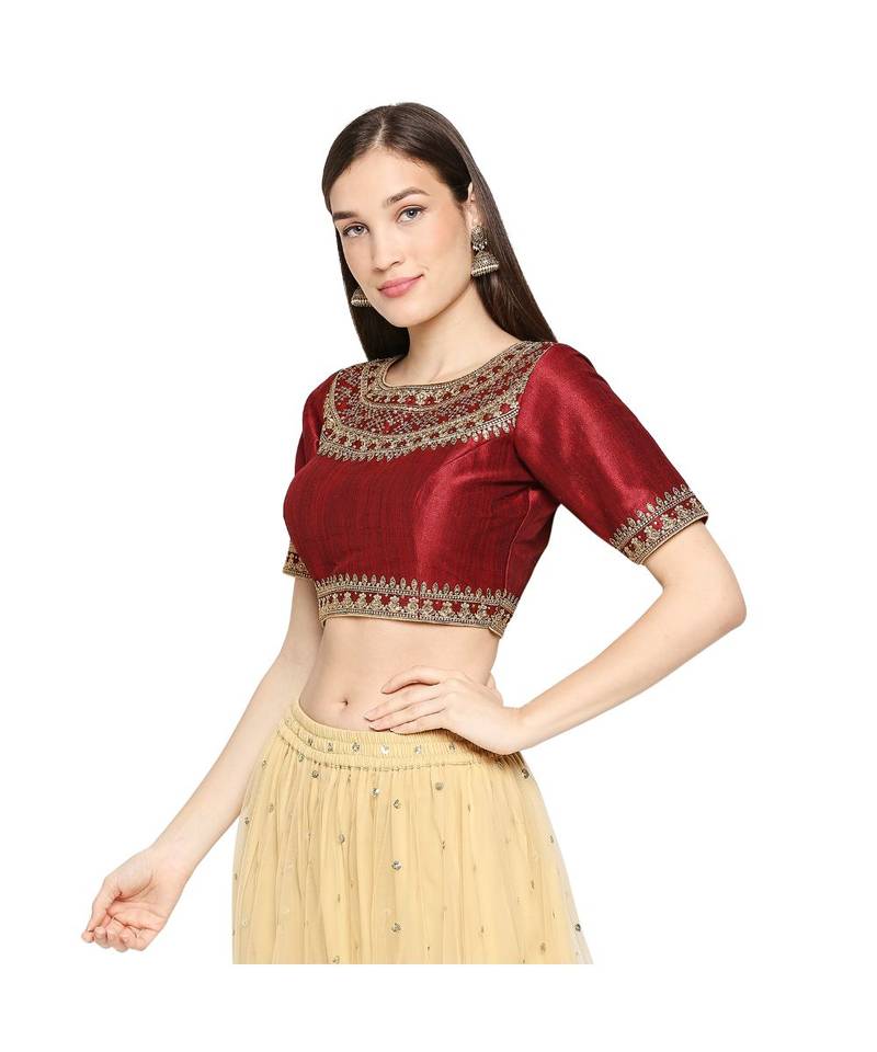 | Product Name | Dark Maroon Art Silk Stitched Round Neck Blouse | |